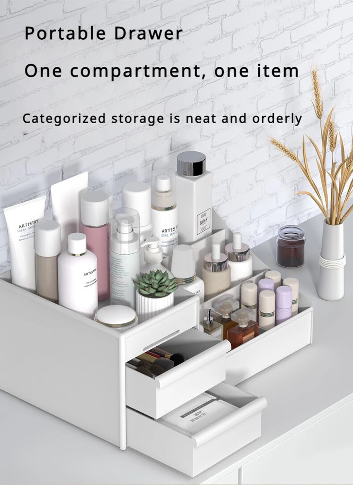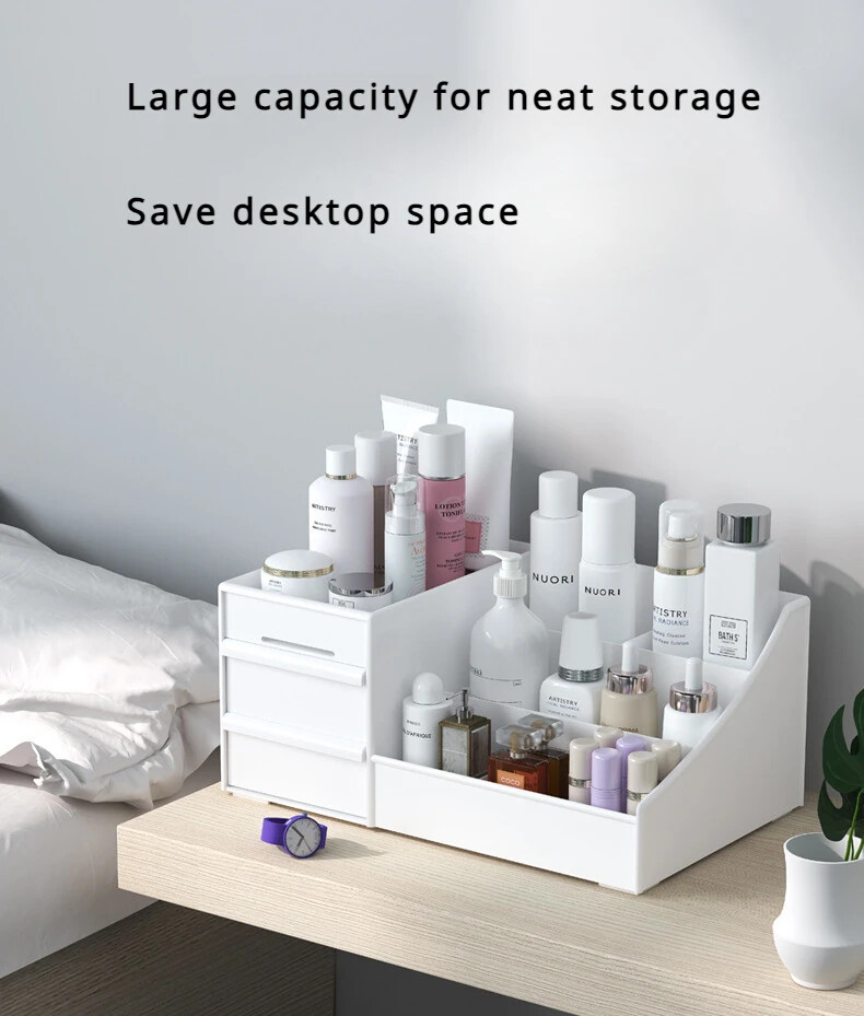 Large Capacity Cosmetic Storage Box Makeup Drawer Organizer Jewelry Nail Polish Makeup Container Desktop Sundries Storage Box size:25.2*15.4*11.5cm