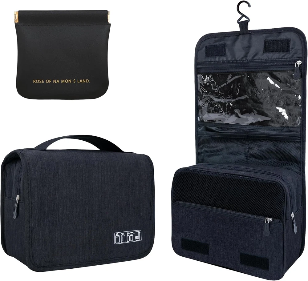 Large Capacity Toiletry Bag Travel with Hanging Hook A-Black&Black bag Product Details Product Dimensions: 7.3 x 3.93 x 16.7 inches Item Weight: 5.5 ounces Manufacturer: Lcsmaokin Country of Origin: China Large Capacity:Lcsmaokin folded size of the toiletry bag is 9.7 x 6.8 x 0.39 inches,the unfolded size is 9.7 x 4 x 16.7 inches,and it weighs 0.49 lbs,which is suitable for your family trips to pack all kids,men and women toiletries Quality Fabric:The cosmetic bag is made of newly upgraded cationic 300D fabric,the surface is waterproof,wear-resistant,durable and practical.The shower bag can be hung on towel racks,coat racks and anywhere else available to save much space Multiple Storage:It's easy to separate wet and dry items because of internal design waterproof compartment.Body washes,shampoos and other bulky items can be put right into the bag.Don't worry your items will spill,because there are dividers inside Practical Occasions:This toiletry bag is convenient to carry toiletries,cosmetics,daily supplies etc.It is suitable for business trips,home travels,gym showers,swimming,outdoor activities and so on Easy to Use:A large toiletry bag can help you categorize toiletries and cosmetics and separate them from other items.This travel toiletries bag is suitable for both men and women,and comes in multiple colors to choose from Versatile Ladies Hanging Toiletry Bag Lcsmaokin's skin care travel bag has a large capacity and a reasonable internal design. The large and compact design will not take up too much space in your suitcase, and you can organize the items you need in an orderly manner (for example: shampoo, shower gel, lotion, toothpaste, Toothbrush, shaving kit, foundation, eye shadow, blush etc). Whether you are playing on weekends, business trips, vacation trips, camping, outdoor activities, gym showers, cosmetic bags can perfectly meet your needs.