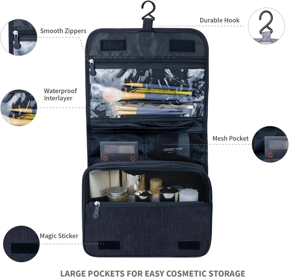 Large Capacity Toiletry Bag Travel with Hanging Hook A-Black&White bag Product Details Product Dimensions: 7.3 x 3.93 x 16.7 inches Item Weight: 5.5 ounces Manufacturer: Lcsmaokin Country of Origin: China Large Capacity:Lcsmaokin folded size of the toiletry bag is 9.7 x 6.8 x 0.39 inches,the unfolded size is 9.7 x 4 x 16.7 inches,and it weighs 0.49 lbs,which is suitable for your family trips to pack all kids,men and women toiletries Quality Fabric:The cosmetic bag is made of newly upgraded cationic 300D fabric,the surface is waterproof,wear-resistant,durable and practical.The shower bag can be hung on towel racks,coat racks and anywhere else available to save much space Multiple Storage:It's easy to separate wet and dry items because of internal design waterproof compartment.Body washes,shampoos and other bulky items can be put right into the bag.Don't worry your items will spill,because there are dividers inside Practical Occasions:This toiletry bag is convenient to carry toiletries,cosmetics,daily supplies etc.It is suitable for business trips,home travels,gym showers,swimming,outdoor activities and so on Easy to Use:A large toiletry bag can help you categorize toiletries and cosmetics and separate them from other items.This travel toiletries bag is suitable for both men and women,and comes in multiple colors to choose from Versatile Ladies Hanging Toiletry Bag Lcsmaokin's skin care travel bag has a large capacity and a reasonable internal design. The large and compact design will not take up too much space in your suitcase, and you can organize the items you need in an orderly manner (for example: shampoo, shower gel, lotion, toothpaste, Toothbrush, shaving kit, foundation, eye shadow, blush etc). Whether you are playing on weekends, business trips, vacation trips, camping, outdoor activities, gym showers, cosmetic bags can perfectly meet your needs.