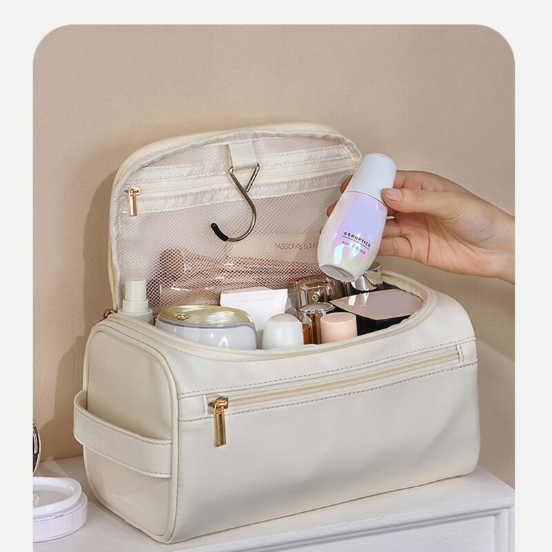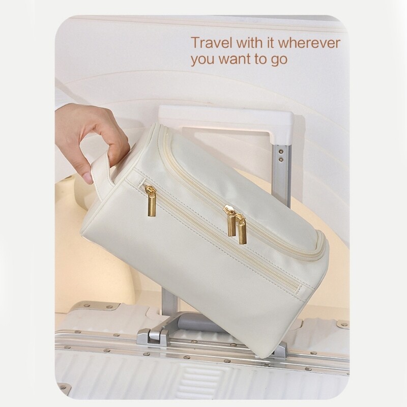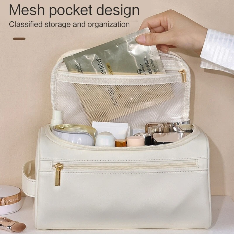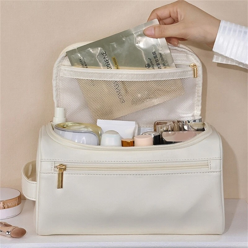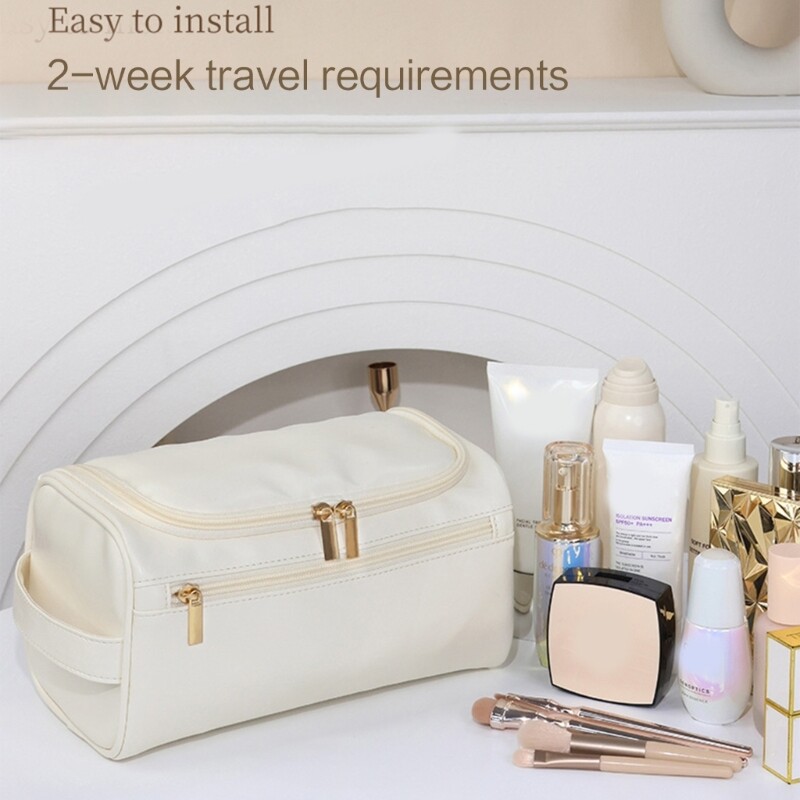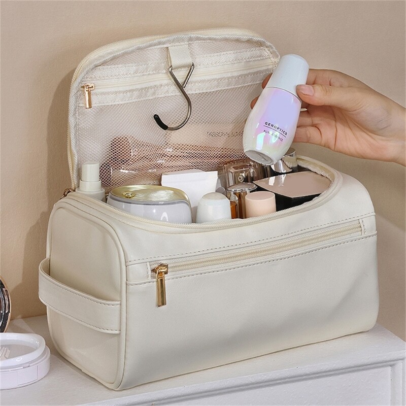 Features: Keep your toiletries organized with the Leather Portable Storage Bag! Its portable design allows for easy access and organization of your items wherever you are. Crafted with quality PU leather, this bag is soft, comfortable, and durable, ensuring that your toiletries stay protected from damage. Perfect for frequent travelers or those who travel often, this portable leather toiletry bag provides ample space to store and organize all your necessary items, making your travels more convenient. Whether you're traveling or simply want to keep your bathroom organized, this versatile bag is designed to fit various scenarios. Use it in your hotel room, bathroom, or at home to keep your toiletries neatly organized and easily accessible. Looking for a practical gift? This portable leather toiletry bag makes for a thoughtful present for birthdays, holidays, anniversaries, and more. Give the gift of convenience and quality with this stylish and functional accessory. Specifications: Material: PU Size: Approx. 25x14x13cm/9.84x5.51x5.11in Color: Beige/Brown/Black Package Includes: 1x Toiletry Bag note: Please allow 1-3cm errors due to manual measurement, make sure that you do not mind before you order. Due to the difference between different monitors, the picture may not reflect the actual color of the item.