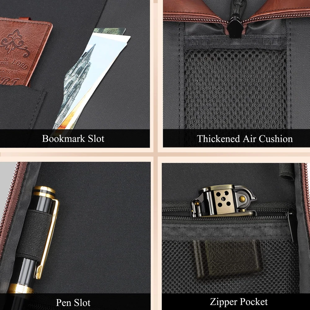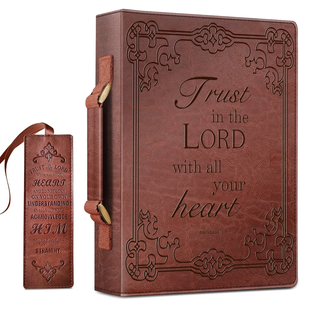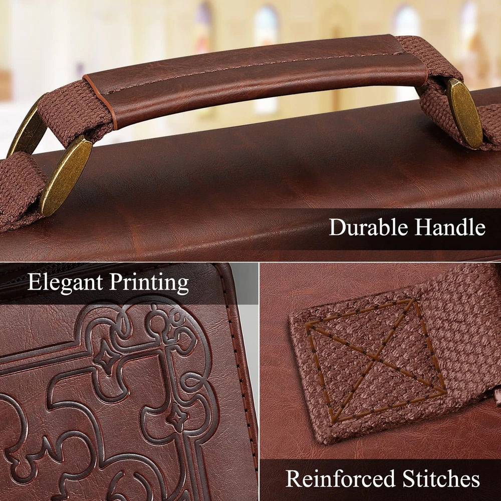 High Quality: Protect your Bible from life’s mishaps with this classic bible cover for men and women made from sturdy vegan leather material that is easy to clean and will withstand daily wear. Comes w/a Bookmark: This bible case comes with a combo exquisite Bookmark. Extra Large Size: 12" x 9" x 2.5". Perfect for standard or larger size Bible/Book/Notebook. Note that Amazon specifications are exterior Bible cover dimensions, please allow extra room to avoid a too snug fit. Humanization design: Comfortable with an improved sturdy handle for easy carry. The Interior pen loops secure your pens or highlighters. A zippered pocket can store small items. This Bible cover is perfect for easy travel to church or Bible Study. Perfect Gift: This large bible bag makes wonderful gifts for your family and friends on Christmas and Halloween.