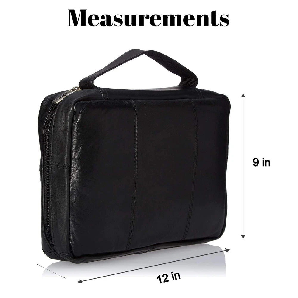 Large Cross Bible Book Cover Genuine Leather with Handle Black Fits Most Bibles SIZED FOR MOST BIBLES: This cover measures 12" x 9.". Perfect for most Bibles that people carry. And the leather strap makes holding and carrying your bible easy and comfortable. EXCELLENT PROTECTION: A Bible cover prolongs the life of your Bible, protecting it from the wear and tear of taking it with you; Even an inexpensive Bible will last longer with this genuine leather Bible cover STORAGE POCKETS: The storage pockets are on the exterior of this case. One is a self closing flap style; the other is a zippered pocket adorned with the cross on the zipper pull. You're sure to get many years of use from this cover. Hand strap and interior ink pen or pencil holder Ample room for your Bible, study materials, and offering envelopes Large Cross Bible Book Cover Genuine Leather with Handle Shipping We offer FREE shipping on all orders! We ship within Three business days of payment, usually sooner. We use a selection of shipping services such as UPS, FedEx, USPS etc. We only ship to the lower 48 states, no APO/FPO addresses or PO Boxes allowed. Local pickups and combined shipping options are not provided at this time. Return You can return a product for up to 30 days from the date you purchased it. Any product you return must be in the same condition you received it and in the original packaging. Please keep the receipt. Payment We accept payment by any of the following methods: PayPal Please pay as soon as possible after winning an auction, as that will allow us to post your item to you sooner! Feedback Customer satisfaction is very important to us. If you have any problem with your order, please contact us and we will do our best to make you satisfied. Contact Us If you have any queries, please contact us via ebay. We usually respond within 24 hours on weekdays. Please visit our eBay store to check out other items for sale! Thank you for shopping at our store.