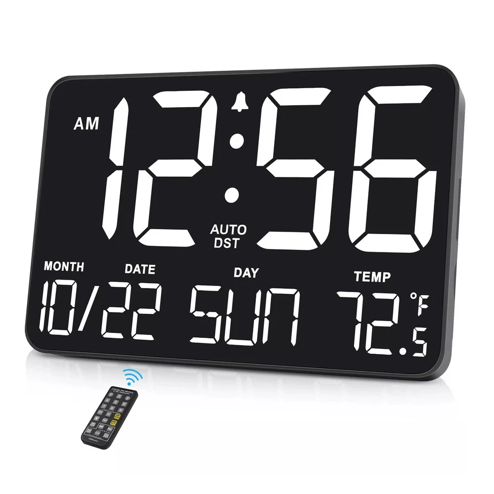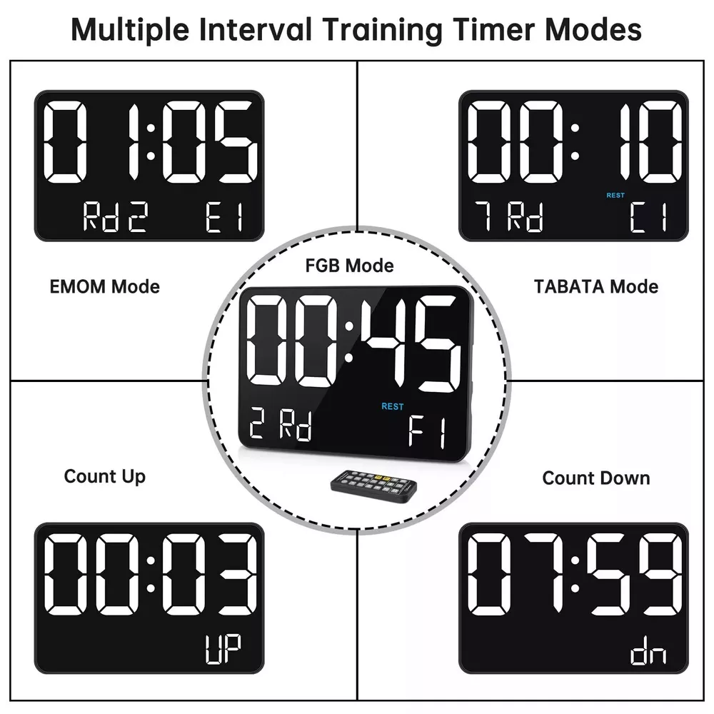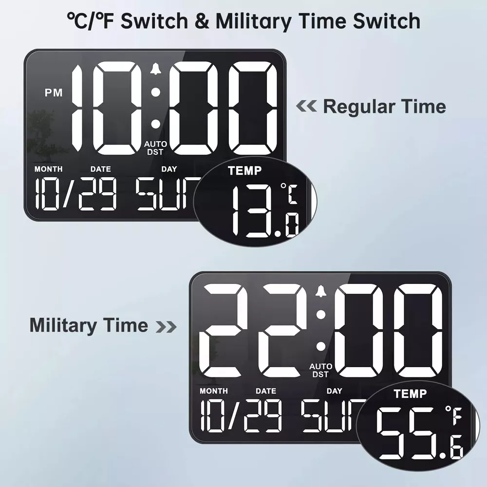 - Soobest large digital clock’s 4-inch bold fonts and bright clear LED lamp beads make certain that elderly and vision impaired person could check time, date from any indoor distance and angle. - The temperature is a great additional display to this large digital wall clock, features with accurate sensor detecting the current indoor temperature, display could switch between Fahrenheit or Celsius on easy-read large screen. - Soobest large display digital desk clock with day and date display help you get rid of missing important appointment. It is also a good reminder for dementia elderly. - Soobest digital Calendar clock’s remote has a very clear instruction and functional division, which make less confusion when you using the remote. And the sensitivity of remote will not let you down at the indoor distance. (Remote could not set alarm). – This digital alarm clock has 6 levels adjustable dimmer, no matter the environment is too bright or too dark you can still see the time by adjusting the brightness with 1 button. If you want to have a good sleep, just set the light off brightness before going to bed, or turn to the most shining level while your room has sufficient lighting. - Soobest digital wall clock is not only a clock, but also a pro timer for gym. It offers 5 sports mode for you to choose, count down timer, stopwatch, Tabata, FGB, EMOM mode. - Pre-programmed TABATA and FGB modes help you start interval training quickly. TABATA: every 20-second exercise with 10-second rest is one round, 8 rounds in total. FGB: 5-minute exercise and 1-minute rest repeating for 5 rounds. Besides the 2 pre-programmed mode, you could customize your EMOM training up to 99 minutes. - This large electric digital clock could stand on the desk or mounted on the wall, just put it where you prefer as a home décor. - No matter where you live or how well you prepared, the power outage seems inevitable. This digital wall clock’s battery backup function is born for this situation, helps you avoid resetting everything you have done before. Please Note: Communication is the best way to solve the problem.Your satisfaction is our top priority. We appreciate your positive feedback! We have always been committed to providing the best service and reliable products to every customer. However, accidents may occur at times, and we understand your concerns and setbacks. Please contact us to resolve the issue before leaving negative feedback. We will reply to you as soon as possible. If there is no response within 24 hours, please check the email in your email. Our goal is to provide first-class customer service, so we usually do our best to solve any problems! (Note: Weekend Information Will Be Replied on the Next Working Day)