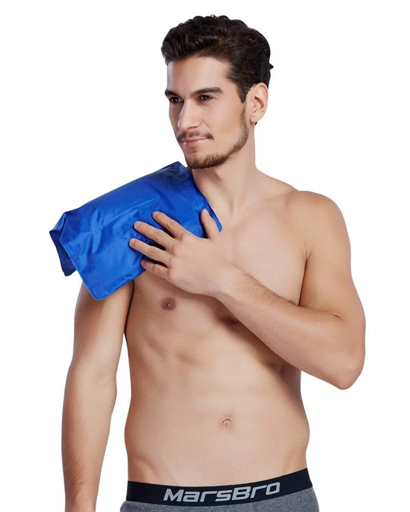 Ice Pack & Wrap, A must-have for pain relief and injury treatment. Are you looking for a versatile quality large ice pack & wrap to relieve pain and treat injuries? You should not miss this multipurpose ice pack & wrap set with hands-free design. Don’t settle for a small or lighter gel pack. Grab large all-in-one ice pack with wrap for heat & cold therapy! Feature: ✓ Universal large size 11" x 14" ✓ Comfortable nylon material ✓ Excellent cold-keeping ability ✓ Reusable and microwaveable ✓ Flexible and soft at 0°F(-18°C) ✓ Keep mobile when secured in place ✓ Compatible for shoulders, arms, back, belly, Hips, thighs, knees, shins etc. Cold therapy instructions Cold therapy is perfect for sports injuries, back ache, joint pain, fever, headaches, toothaches and minor burns etc. ✓ Store the gel pack in the freezer for at least 2 hours. Hot therapy instructions Hot therapy is perfect for sprains, strains and stiffness, muscle pain and spasms, mild arthritis, menstrual cramps etc. and should be applied 48 hours after the injury. Microwave heating ✓ Heat the gel pack in the microwave according to the detailed instructions on the gel pack. Hot water heating ✓ Immerse gel pack in the hot water for approximately 10 minutes. Package Included ● 1 nylon gel pack (11" x 14", 2.2 lbs) ● 1 polyester wrap that has a pouch and 2 elastic bands (the long band extends from 29.5" to 43.3") ● 1 extra elastic band with hook and loop fastener (19.7" in length) OUR GUARANTEE ✓With , you're taking on absolutely no risk. 1-Year Warranty (Free No-Hassle Replacement!) ✓Best customer service. Please get in touch with us for any questions. Relieve your pain from injuries right NOW and own this Ice Pack with Wrap! Large Coverage - Includes a large nylon reusable gel ice pack (11" x 14"), a matching wrap and an extension strap. This product can meet your requirement of large size ice pack. Compared to using the ice pack alone, the cover can prevent the condensate water during use and the potential infection. Unique Design - The two-divider design of the gel pack can limit the flow of the gel partly and help to keep the gel in uniform distribution. As a result, the gel will not easily clump together unlike other large cold packs. Choosing sponge lined blue cloth and mesh cloth as the materials, the wrap feels very soft and comfortable and also the ice/heat in the gel pack can go through and reach the skin and tissue easily. Hot Cold Dual Use - Filled with enough non-toxic gel, the reusable gel pack delivers up to 30 minutes of soothing cool or heat relief for aches and pains. It keeps still flexible and soft after frozen even at -4°F(-20°C). Also, it can be heated in hot water or by microwave. Versatile - This product can be used for shoulder rotator cuff, back, belly, hips, thighs, knees, shins etc. It is also a first-aid essential for home or clinical use as it is ideal for sports injuries, postoperative recovery, muscle pains, strain & stiffness, body aches and more! One Year Warranty. 30-day unconditional return and free replacement within one year. Your 100% satisfaction is always our goal. Please purchase with confidence.