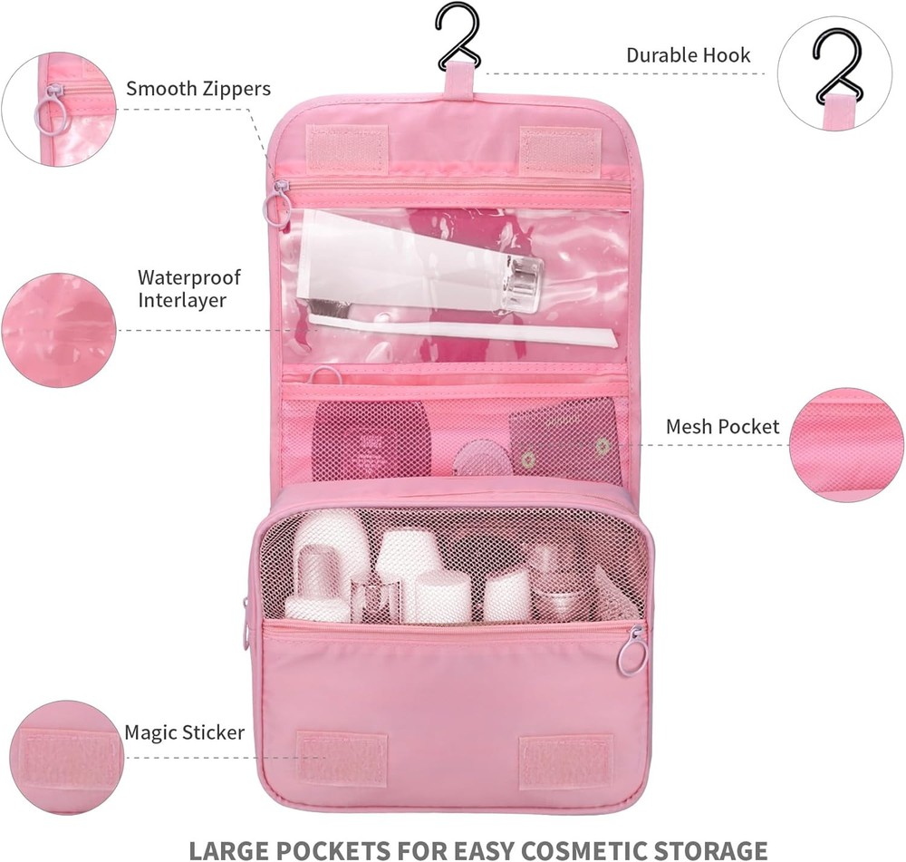 Large Capacity Toiletry Bag Travel with Hanging Hook for Men and B-Pink Product Details Product Dimensions: 9.7 x 4 x 16.7 inches Item Weight: 4.2 ounces Country of Origin: China Large Capacity:Lcsmaokin folded size of the toiletry bag is 9.45 x 7.28 x 0.39 inches,the unfolded size is 9.45 x 4 x 16.9 inches,and it weighs 0.33 lbs,which is suitable for your family trips to pack all kids,men and women toiletries Quality Fabric:The cosmetic bag is made of high quality oxford cloth,the surface is waterproof,wear-resistant,durable and practical.The shower bag can be hung on towel racks,coat racks and anywhere else available to save much space Multiple Storage:It's easy to separate wet and dry items because of internal design waterproof compartment.Body washes,shampoos and other bulky items can be put right into the bag.Don't worry your items will spill,because there are dividers inside Practical Occasions:This toiletry bag is convenient to carry toiletries,cosmetics,daily supplies etc.It is suitable for business trips,home travels,gym showers,swimming,outdoor activities and so on Easy to Use:A large toiletry bag can help you categorize toiletries and cosmetics and separate them from other items.This travel toiletries bag is suitable for both men and women,and comes in multiple colors to choose from