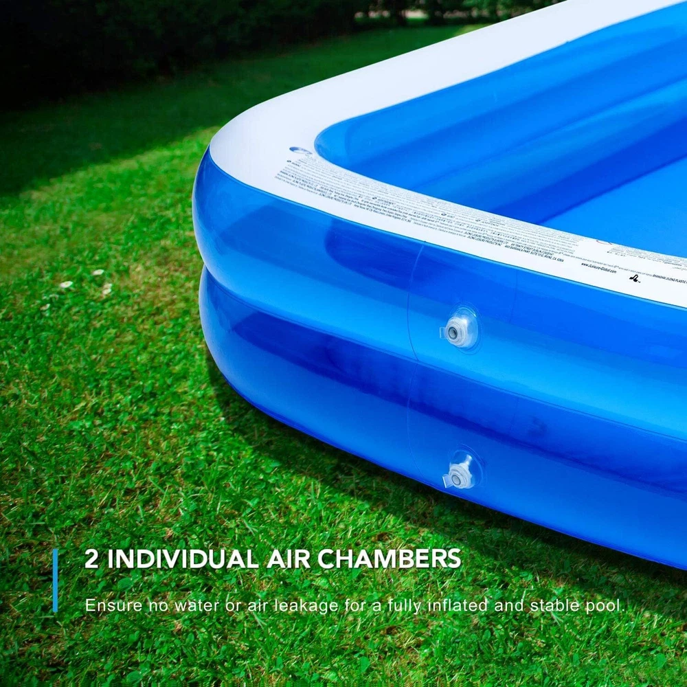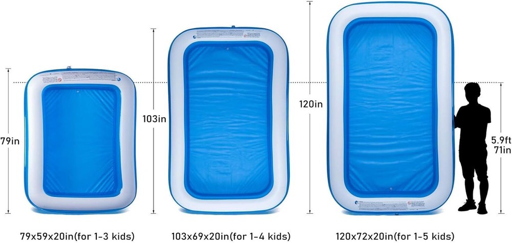 Inflatable Swimming Pool 120" X72" X20" Family Swim Center for Kids Full-Sized Lounge Pool for Kids Adults Easy Set for Backyard Summer Water Party Outdoor Kiddie Pools Item Description About this item 120” inflatable family lounge pools fits a family with 2 kids to enjoy a splashing pool party in summer. Outside dimensions: 120x72x20in, Inside dimensions: 104x56x20in. The high-strength hot carbon tough PVC layered independent airbag adopts reinforced thermal fusion technology, which is firm and not easy to break. Extra repair patch included in the package help prolong lifespan. CHICLIST kiddie pool is produced using and BPA-free materials that meet the standards of international children’s toys. Comes with 2 individual air chamber, the inflatable kiddie pools can withstand extra weight while preventing air leakage. This blue swimming pool has a white coating that reflects the heat of the sun. You can have parent-child swimming, playing with your family anytime, anywhere such as outdoor, garden, backyard. The family lounge pool is easy to set up, you just need to simply spread out on the ground level, inflate in 3~4 minutes by electric pump(not included), fill the pool with water or balls and enjoy. › See more product details *CHICLIST Inflatable Swimming Pool is the perfect addition to your backyard for summer water parties, family swim time, and outdoor kiddie pools. *Measuring at a full-sized lounge pool, the dimensions of the pool are 120" X 72" X 20", making it big enough for children and adults to enjoy. *Kids will love this family swim center as they can splash around and have fun with their friends. *The size of the pool makes it perfect for parents to join in along with their kids, creating an enjoyable bonding time. *Adults will also appreciate the opportunity to relax in the pool and unwind after a long day at work. *CHICLIST Inflatable Swimming Pool is a fantastic purchase for anyone looking to add some outdoor fun to their home. *With its durable construction, easy set-up, and family-friendly design, it is sure to provide hours of entertainment for you and your loved ones. Holds up to 2 adults plus 4 kids to a enjoy splashing pool party in the backyard. CHICLIST family inflatable swimming pool can hold up to 2 adults and 4 kids to splash and play in the sun. 2 individual air chambers can withstand extra weight while preventing air leakage; With extra wide side walls allow for maximum play and are comfortable to lean back on. BPA-free material, ASTM and ICTI certified that meet the standards of international children’s toys. Payment We accept payment only through PAYPAL Shipping We ship products worldwide through standard express courier service, it will reach within 7 to 10 days to abroad buyers, we ship the product after recieved clear payment and give full information about shipment to the buyer Return We accept product return within 7 to 21 days from delivery date but product should be in original position and not in damaged condition,the return shipping charges will be buyer responsibility