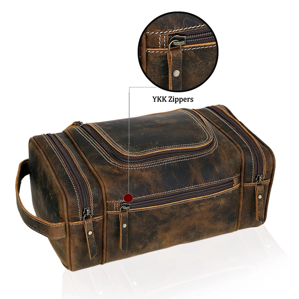 VC VINTAGE COUTURE Leather Toiletry Bag for Men - Extra Large Leather Men's Toiletry Bag for Traveling Hanging, Real Leather Dopp Kit for Men Leather Shaving Bag for Travel Premium grain leather - our exclusive xl large leather toiletry bag for men is made from top grain leather with waterproof lining and solid brass hook for hanging. This travel toiletry bag will last a lifetime. Large opening - our toiletry bag has a extra wide mouth lid that easily fits large toiletries. Travel bag for toiletries Size - our extra large dopp kit for men is for any adventure. Compact enough for a carry on yet big enough for those long overseas trips. Ultimate travel toiletry bag. Holds everything - from prescription bottles to toothpaste to contact lenses & cleaning solutions, all manner of personal hygiene stuff, razor, shaving cream, cologne, comb, floss, lotion, mouthwash - this toiletries kit embraces them all, safeguarded by a sturdy ykk zipper closure. Multiple use - a versatile travel bathroom bag, shaving bag, hygiene bag, shower bag, travel organizer, cosmetic bag, makeup bag, travel bag. Large Capacity Stoage Features a roomy interior. Plenty of space for all your daily essentials. Utilitarian, Adaptive Not only is this bag used for toiletries, It can be utilized for other applications as well. Compact, Easy Access Lightweight. Perfect size to fit inside your carry-on bag or suitcase. Multiple Pockets 4 different sized pockets depending on your needs. SHIPPING Domestic Buyers - We have confidence in our products, but if you are not fully satisfied please contact us within 30 days of purchase and you will get full refund. - We ship within 3 business days of payment, usually sooner - We offer FREE shipping on all orders! - We only ship to the lower 48 states, no APO/FPO addresses or PO Boxes allowed International buyers – please note: Import duties, taxes, and charges aren't included in the item price or postage cost. These charges are the buyer's responsibility. - Please check with your country's customs office to determine what these additional costs will be prior to bidding or buying. * Order Cancellation Policy ** You can return a product for up to 30 days from the date you purchased it. 1. The seller reserves the right to cancel the special case only due to eBay cancellation fee. 2. The decision of seller is the final. 3. The seller will respond to the cancellation request within 2 business days. Please wait for the result of cancellation. 4. In case the cancellation is not completed by some reasons, the buyer can follow the options below to get the refund. 4.1 The buyer can reject the item when it arrives. 4.2 The buyer can send the item back to the seller within 30 days If the buyer receives item (USA Shipment ONLY). The seller will provide the FREE return label to the buyer when the buyer opens " Return Item" case on eBay by using the reason as "Change my mind" ONLY. 5. When buyer has placed the order. The order will be processed and completed by automatic warehouse system within 5 minutes. In case that buyer sends the cancellation request after 5 minutes of placing the order, the request will be rejected. **Sending direct message to cancel the order is not allowed for every case.* Return Policy For the return case - If buyer would like to return the items for refund or replacement, please CONTACT SELLER to receive the free return label from seller. The refund or replacement will be processed with the tracking number of return label which is provided by seller only. The other ways of return which are not approved by seller will not be processed for the refund or replacement.