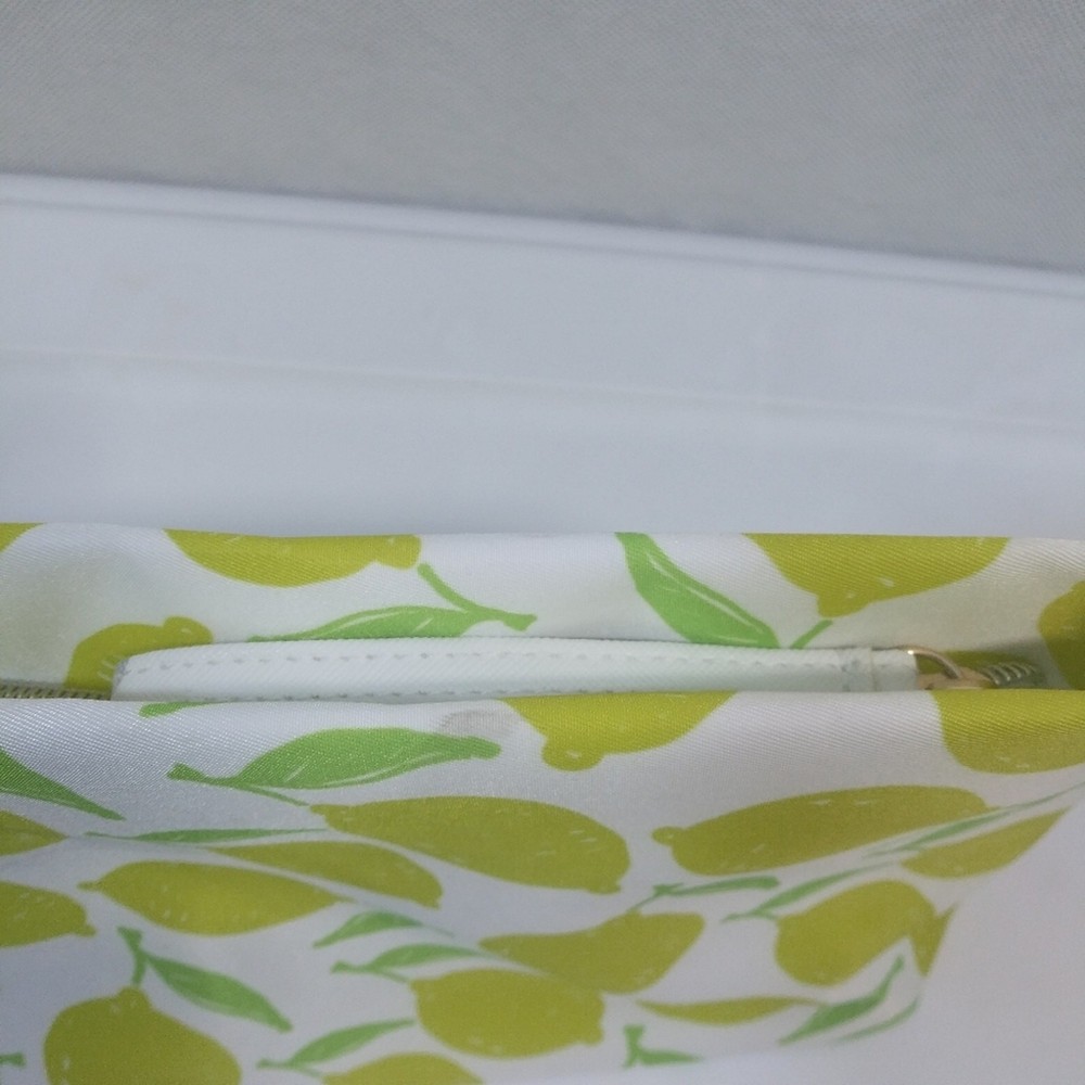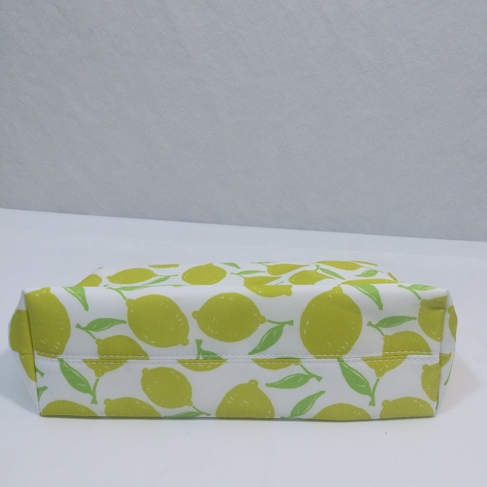 Ulta Large Lemon Print Cosmetic Bag Lemon print Zipper closure Large Fold-able Gently used some markings on zipper pull and top approximate measurements Height 7" Width across 12"