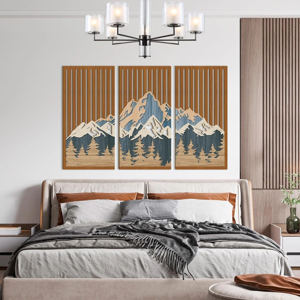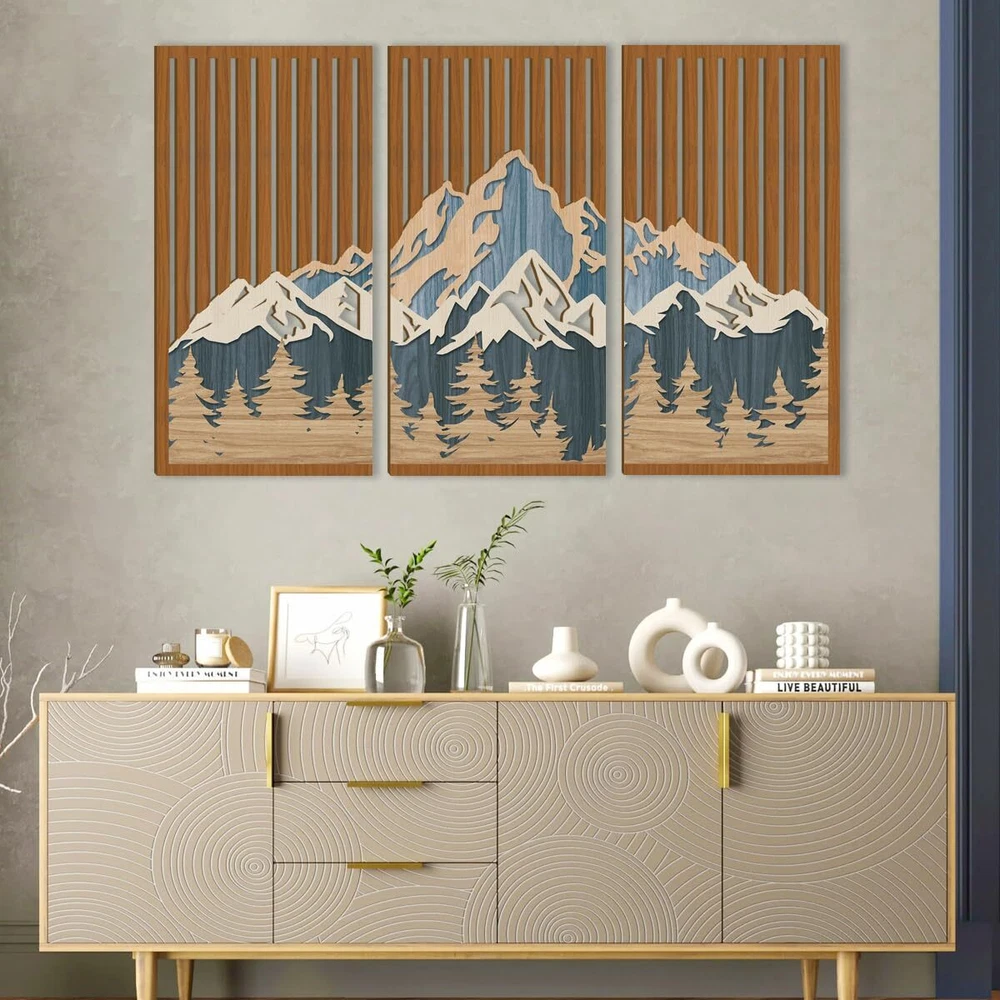 【Mountain Forest Wall Art】This set of wood mountain wall art is the perfect combination of hollow wood art and snow, towering mountains and dense forests. The wood wall art makes you feel like being in nature. Hanging on the wall makes your space full of mature and unique flavor. 【High-quality Material】Abstract snow mountain art wall decor is made of wood. We use advanced technology to make hollow formwork, which makes the snow mountain more attractive. The nature wilderness painting is strong, not easy to fade and deform, polished smoothly, and does not hurt hands. 【Easy to Hang】The size of mountain art is about 40.64 * 81.28cm/16 x 32 in/pc, which is light and easy to hang on the wall. There are two serrated hooks on the back of the board. You can use nails to fix the mountain pictures wall decor, which is convenient for your installation and disassembly. Two silica gel transparent pads for vertical and horizontal balance are also provided. 【Wide Use】Large Mountains wall art is suitable for most home decoration styles, such as modern style, minimalist style, farmhouse style, log style and so on. It can decorate any space, such as living room, bedroom, dining room, home office, porch, etc., to create a mature artistic atmosphere. It will be integrated with other furniture to make the space more atmospheric. 【Customer Service】We are committed to providing customers with high-quality products and services. If you have any questions about the geometric mountain wood wall art for home you received, please contact us at any time.