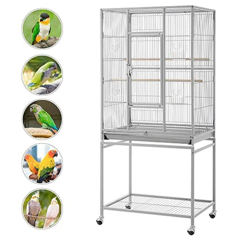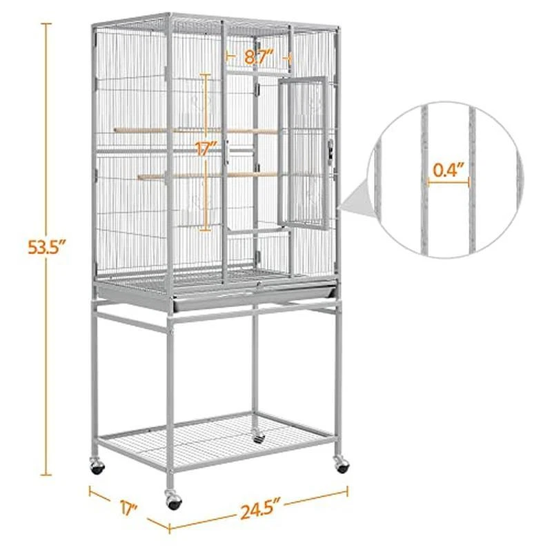 You may also like 1/2 '' Bird Cage Round Spacious Parakeet Top Hook Travel 3/8" Wire Spacing Home 36.63 USD 38.56 USD Free shipping 5% off About this item Safe and Secure: 1 cm/ 0. 4’’ bar spacing makes sure your small pets cannot squeeze out of the cage, which is suitable and safe for pets in different sizes. Front door is secured with crescent lock, which can prevent your smart birdies from opening the doors and keep them safe in the cage when you are not around. Special arc-shaped wire on each small door is for locking purpose, making the door impossible for birds to lift Suitable birds: Zebra finch, canary, Pacific parrotlet, Java finch, lovebird, budgie, black-headed caique, senegal parrot, green-cheeked conure, red-rumped parrot, sun parakeet, quaker parakeet, cockatiel and other similar size birds Convenient moving: Due to its large size, it may take a little effort to move this cage. However, our parrot cage comes with a stand that sits on four 360° swivel smooth rolling casters, which can perfectly solve this problem. Detachable mobile stand can be easily removed if needed. Besides, you can even attach the casters to bottom of the cage directly to make the cage mobile without a stand Clean with ease: A slide-out tray under the cage can be removed and cleaned with water. A grate between pets and the tray can avoid your pets walking/laying directly on their droppings, which ensures your pets’ health and the tidiness of the cage Humanized designs: Features an extra storage shelf on the stand to hold your pets’ accessories and feed, keeping them handy and neat. 4 small feeder doors on the front are for convenient feed replenishment. You can access the feeders from outside and don’t need to risk your bird fleeing. 2 polished wooden perches are provided for your birds to rest Brand:Yaheetech Target Species:Bird Product Dimensions:24. 5"L x 17"W x 53. 5"H Gap Size:10 Millimeters Material:Alloy Steel, Plastic You may also like Marathon 20265 Pneumatic Air Universal Utility Wheelbarrow Tire Durable NEW 40.65 USD 42.79 USD Free shipping 5% off Alkaline SportWater Electrolyte 1L x12 All-Day Hydration Wide Mouth Bottle New 24.8 USD 26.11 USD Free shipping 5% off 7"x7"x3" Pop-up Cat Carrier Portable Light-Weight Cabinet Closet Folding Sturdy 26.41 USD 27.8 USD Free shipping 5% off Gold Desk Lamp W/ Glass Shade & AC Outlet Rotary Switch Metal Finish Desk Table 43.09 USD 45.36 USD Free shipping 5% off 54In Floor Lamp Standing Lamp W/White Shade MDF Table Reading Living Room Indoor 61.63 USD 64.87 USD Free shipping 5% off Floor Lamp Organizer Storage Shelf Linen Shade 62.5" Black Pull-chain Illuminate 58.56 USD 61.64 USD Free shipping 5% off Dry Cat Food Salmon & Whole Brown Rice Recipe Health Natural Wholesome 6 Lb Bag 28.88 USD 30.4 USD Free shipping 5% off Planting Grow Box Raised Bed Self Watering Polyethylene Overflow W/ Mobile Wheel 44.9 USD 47.26 USD Free shipping 5% off 6-In Reusable Snack Container Spill Proof Spinner 5 Compartments For Travel New 29.33 USD 30.87 USD Free shipping 5% off 12 Pack Variety Pack Wet Cat Food Health Salmon & Whitefish Pate Omega-3 No Corn 32.75 USD 34.47 USD Free shipping 5% off Toilet Brush Holder Set Matte Black Durable Compact Bathroom Cleaning Tool New 27.06 USD 28.48 USD Free shipping 5% off 12 In Linen Aluminum Fry Pan Nonstick Cooking Durable Dishwasher Safe Kitchen US 30.73 USD 32.35 USD Free shipping 5% off