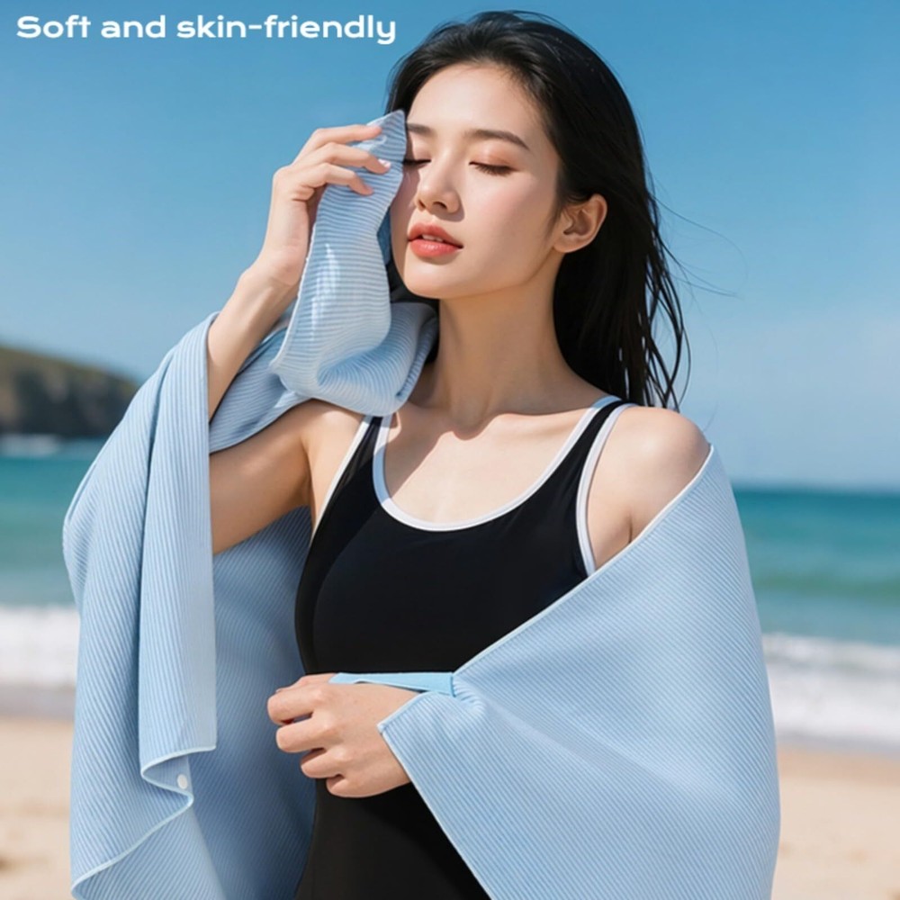 Specific ation : Package Included: 1 PCS Beach Towel Gender: Female Material: Polyester + Nylon Weight: 210 g Applicable scene: Swimming / Running / Beach / Water Sport / Workout / Travel and etc..... Product descri ption : Premium Polyester + Nylon Blend Fabric:Crafted from a durable yet lightweight Polyester + Nylon blend, this beach towel combines exceptional softness with skin-friendly comfort. The fabric resists wear, fading, and pilling, ensuring long-lasting performance even with frequent use. 600 ml Water absorption & Quick-Drying: Engineered for high performance, the towel instantly absorbs up to 600ml of water. Ideal for post-swim, workouts, or water sports. Its moisture-wicking technology and quick drying design keep you dry and comfortable within seconds. Sun Protection & Large: Features UV Blocking fabric for reliable sun protection during beach days or outdoor adventures. With a size of 31.5 x 51.1 Inch (80 x 130 cm), it provides ample coverage while remaining lightweight and foldable for easy portability in bags or backpacks. Versatile for Active Lifestyles: Perfect for women who love swimming, yoga, running, travel, or beach. Use it as a beach blanket, yoga mat cover, gym towel, or post workout wrap. The stylish design and functional size suit all occasions. Lightweight 210g & Solid Color: Design weight only 210g, this lightweight towel is convenient to carry for travel, sports, or beach . The solid color design complements any style.