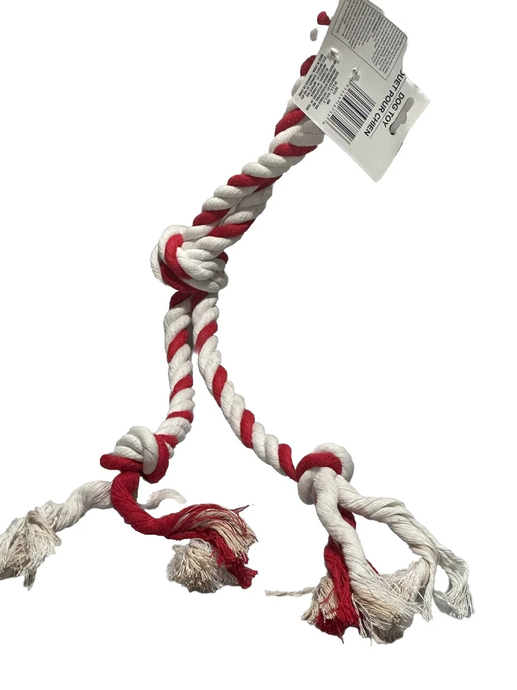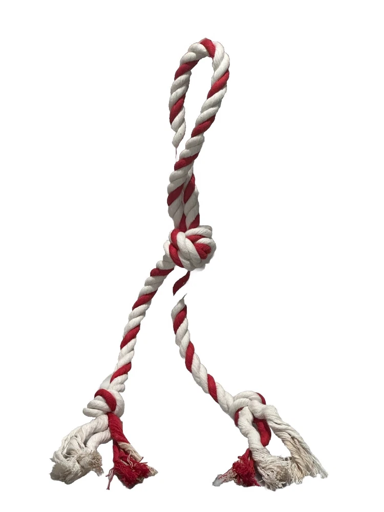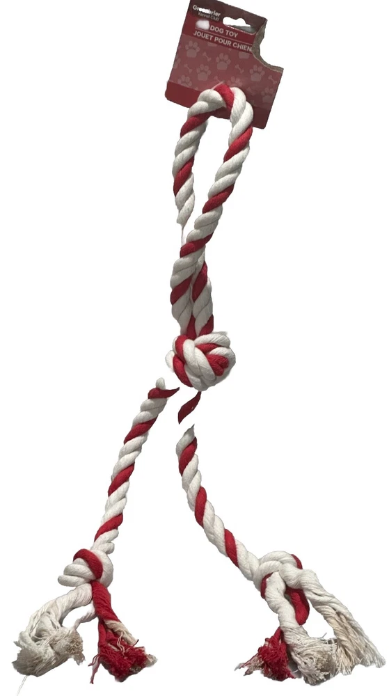 The Large Rope Dog Toy by Greenbrier Kennel Club is designed as a chew toy for large dogs, measuring 20 inches in length. Made of colorful and strong rope material, this interactive toy is heavy duty and durable for extended play sessions. It is ideal for providing entertainment and exercise for energetic larger dogs.