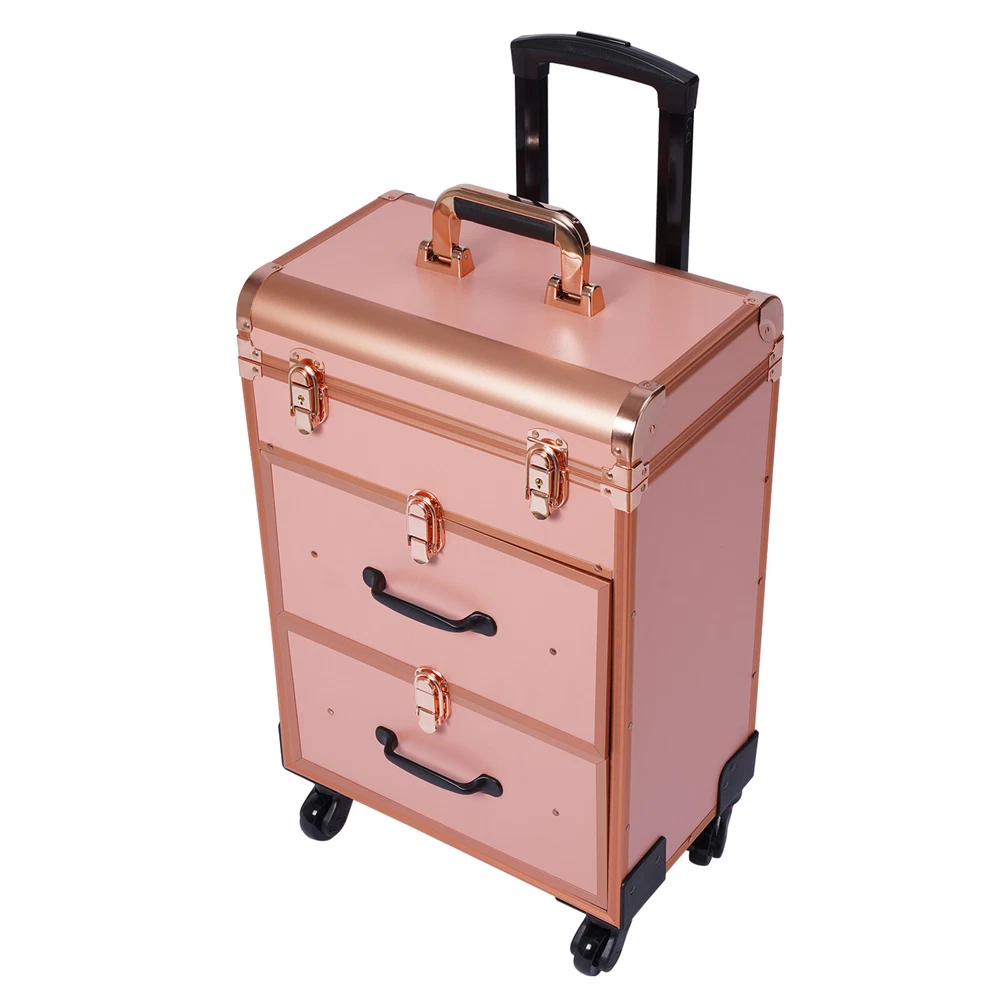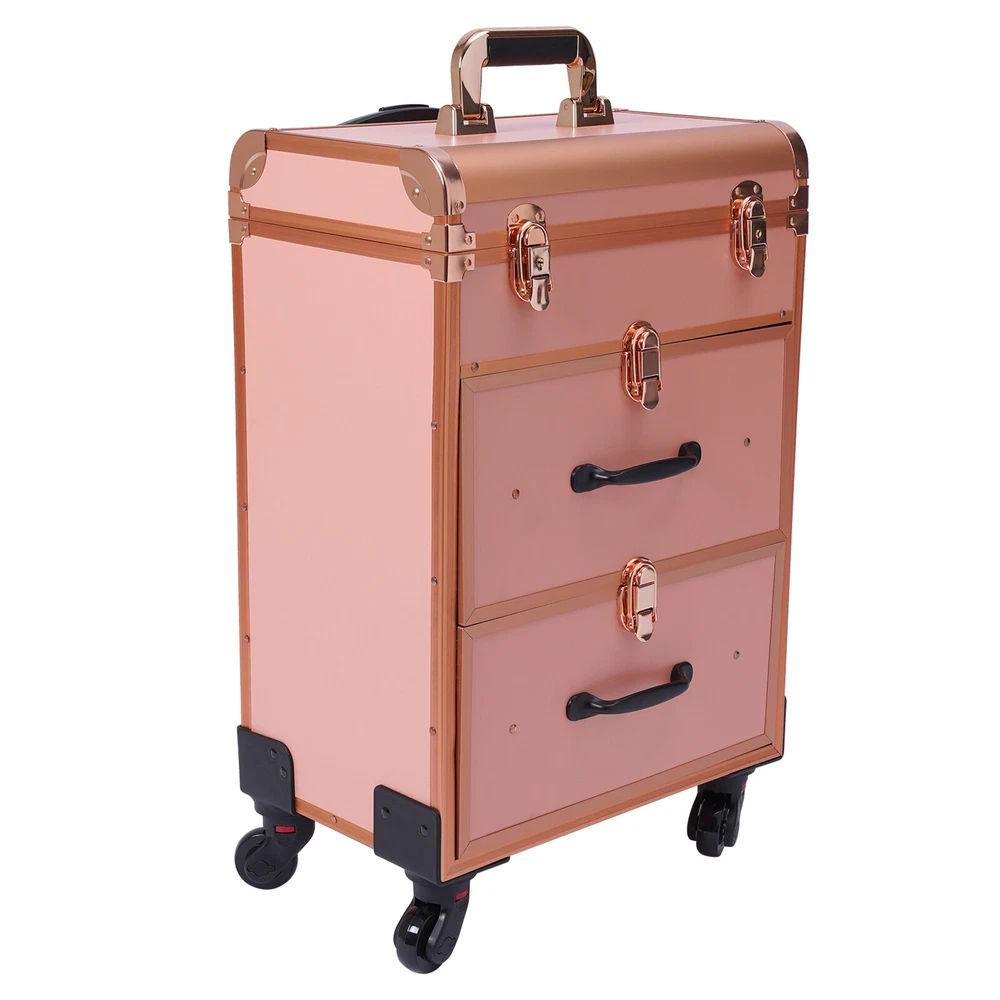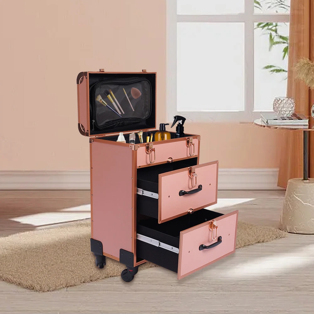 This rolling makeup case is a game-changer! The sturdy aluminum frame and spacious three-tier design make organizing cosmetics effortless. The smooth wheels and retractable handle ensure easy mobility, perfect for professionals on the go. Lightweight yet durable, it’s ideal for salons, travel, or home use. A must-have for beauty experts who need both style and functionality!