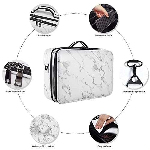 Return Policy Fast Delivery Trusted seller Makeup Case Large Travel Cosmetic Bag Portable Make up Organizer Artist Storage with Adjustable Dividers for Hair Curler Brush Set and Shoulder Strap (Large Marble) Product Description 【3 Layers】This large makeup case is designed in three layers (16×11.4×5.5 inches), ideal for providing plenty of space to storage your makeup and cosmetic accessories, like lipstick, lip gloss, skincare products, nail polish, full-sized bottles, and a big eyeshadow palette! 【Adjustable Shoulder Strap】Professional makeup bag organizer with a shoulder strap can be cross-body, over the shoulder, or backpack. Fixed belt design added on the back you can set the train case on the trunk, great for travel. 【Adjustable Compartments】This makeup bag has 10 adjustable EVA dividers and 12 makeup brushes slots. You can design the internal compartments by adjusting the dividers to fit different cosmetics and keep them perfectly separated and organized. 【Durable Material】This travel makeup case is made of top-grade marble PU leather is water-resistant, durable, shockproof, and easy to wipe clean. 【Perfect Gift】The marble pattern cosmetic bag has a unique style of chic fashion. Great gift for your friends and family on Christmas, Birthday, Anniversary, etc. Shipping Returns Payment Shipping Shipping is FREE to all addresses other than APO/PO boxes in the lower 48 states. All our stock ships from US-based warehouses. Shipped via USPS or UPS (depending on location and package weight) Unless stated otherwise, all orders will ship within 24-72 hours of your payment being processed. Check our feedback to see the great reviews of FAST shipping we offer. Returns Seller does not accept returns Payment We currently accept payment via eBay managed payments only. Once payment is cleared, we will dispatch your shipment within 1-3 business days. Please refer to the "Shipping" tab for more information regarding shipping speed to your destination.
