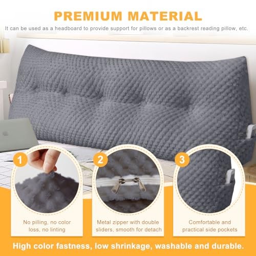 Menu 1. We require immediate payment. 2. We currently accept payment via eBay managed payments only. 3. Once payment is cleared, we will dispatch your shipment within 1-3 business days. Please refer to the "Shipping" tab for more information regarding shipping speed to your destination. Large Triangular Headboard Wedge Pillow Soft and Supportive Headboard Backrest Positioning Support Bolster Cushion, Bed Wedge Pillow with Removable Cover(Dark Gray,Queen,59x8x20inch) Product description ERGONOMICALLY SHAPED SUPPORT: WUIOYNF headboard wedge pillow provides us with scientific, comfortable and healthy support according to ergonomics. It can be used as a headboard cushion to decorate the bed or as a backrest positioning support bolster cushion for back pain relief. SOFT AND SUPPORTIVE MATERIAL: Upgrading fleece fabric adopts novel fluffy fiber, which makes large triangular wedge bed pillow has advantages that others cannot match: the fabric is skin-friendly and elegant, not easy to slip, soft touch, sweat-absorbent and dry, lint-free and ball-resistant, good wrinkle resistance, drape and crisp. The stuffed 7D51 three-dimensional cotton is fluffy and not easily deformed. REMOVABLE COVER AND EASY CLEAN: The triangular reading bed rest pillow has a metal zipper with double sliders, which is smooth for detach. The buttons are detachable for quick and easy disassembly. The wedge headboard pillow fabric has high color fastness, low shrinkage, washable and durable. TWO LARGE SIDE POCKETS: Backrest Wedge Pillows are designed with two side pockets to store your phone, glasses, remote control and other items. While filling the headboard gap in bed, the supportive headboard effectively gives you the most convenient reading and resting experience. ESSENTIAL FAMILY GOODIES: Triangular Headboard Pillow not only decorate the bed and act as a headboard, but also fill in the gaps and keep items from falling out. You can use it as a support bolster cushion, which provide back support for your family when reading, playing games, and taking a nap. It's also popular in college dorm beds. PLEASE MESSAGE US IF YOU HAVE ANY OTHER QUESTIONS, AND MANY THANKS FOR READING ALL OF THIS. Copyright ©#. All Rights Reserved.