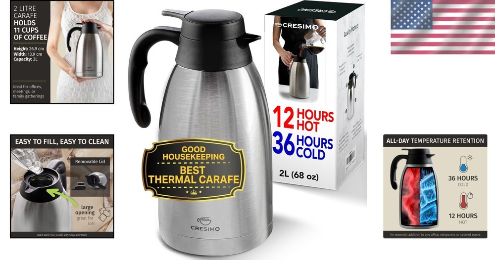 Large Vacuum Insulated Carafe for Coffee, Tea & Hot Cocoa – 12 Hour Hot Storage ‹ › ‹ › ‹ › ‹ › ‹ › ‹ › ‹ › ‹ › ‹ › ‹ › ‹ › Large Vacuum Insulated Carafe Designed for Coffee, Tea & Hot Cocoa – 12 Hour Hot Storage Features: EASY TO CLEAN: Large mouth opening simplifies filling and cleaning, making it an ideal choice even for hot cocoa at parties. VACUUM INSULATION: Lab-tested technology maintains temperature—keep your beverages hot for up to 12 hours or cold for 36 hours. LARGE CAPACITY: 2-liter design pours over 8 cups, perfect for cocoa bars, cafés, tailgates, and meetings. ONE-HAND POURING: Effortless pouring makes serving hot tea, cold milk, or hot chocolate a breeze. AMERICAN DESIGNED: Each carafe comes with a lifetime guarantee, reflecting our commitment to quality and excellence. Benefits: Maintain optimal beverage temperatures with exceptional insulation. Easily prepare and serve drinks, perfect for entertaining or casual enjoyment. Versatile use for coffee, tea, hot cocoa, or even as a cold drink dispenser. Non-slip base ensures stability, preventing spills and accidents. Thoughtful design enhances your beverage serving experience with convenience and elegance. Why choose our Large Vacuum Insulated Carafe? Unlock the elegance and practicality of our Large Vacuum Insulated Carafe, a perfect companion for those who appreciate the finer things in life. With its ability to maintain temperature for up to 12 hours for hot drinks, your coffee or tea will stay as fresh and delightful as the moment it was brewed. Enjoy effortless serving with its easy-to-pour design and large capacity, making it ideal for gatherings, parties, or simply indulging in your favorite hot beverage. Elevate your beverage experience today—embrace the luxury of our Large Vacuum Insulated Carafe and indulge in the warmth it brings. Shipping Free & Fast Shipping - We offer free shipping to most of the USA with a normal delivery time of 3-10 businessdays. However, due to various situations, additional delivery time (up to 3 weeks) may be required for some items. Alternative Carriers - We may use alternative carriers (e.g. USPS, FedEx, UPS, etc.) to ensure your package arrives safely and on time. Due to the use of multiple carriers, we are unable to provide a tracking number automatically. Handling Time - Orders are processed and shipped within 1-5 business days of receiving cleared payment. Shipping Restrictions - Shipping to Alaska, Hawaii, Puerto Rico, Guam, and other US territories may incur shipping charges or delivery restrictions. Please contact us before ordering, or your order can be refunded/cancelled. State Restrictions - There may be restrictions based on your state of purchase. For example, certain items may not be shipped to California due to state regulations. Contact for Tracking Updates - If you require tracking updates or have any concerns about the delivery of your order, please feel free to contact us, and we will be happy to assist you. Return Please see our ebay return policy. We do not accept return on most products. This is to avoid customers mis-using ebay returns. All sales are final. Please be sure to check the return policy listed at the top of the listing. In rare cases, we may accept returns, if the buyer pays both ways shipping and 20% restocking fee. If you are un-sure of return policy of a particular item, please ask before buying. Payment We accept all major credit cards, PayPal, and Apple Pay for your convenience. Your payment information is secure and encrypted to ensure a safe and seamless transaction. Please complete your payment within 3 days of purchase to avoid any delays in shipping. Feedback Your feedback is extremely important to us. We strive to provide the best products and customer service possible. If you are satisfied with your purchase, please take a moment to leave us a positive review. If you have any concerns or issues with your order, please contact us before leaving negative feedback. We are committed to resolving any problems and ensuring your satisfaction. Contact Us If you have any questions or concerns, please feel free to reach out to our customer support team. You can contact us through the eBay messaging system. We are available Monday to Friday, 9:00 am to 5:00 pm EST, and we will do our best to respond to your inquiry within 24 hours. Buy it now and enjoy a pleasant shopping experience! UPC: Not Set Unit Quantity: 2L Compatible Brand: Coffee Carafe Compatible Model: General Use Suitable For: Bean-to-Cup Coffee Machine,Cappuccino Machine,Capsule Coffee Machine,Coffee Grinder,Coffee Roaster,Espresso Machine,Espresso Maker,Filter Coffee Machine,French Press,Moka Pot,Percolator,Pod Coffee Machine,Tea Maker Features: Easy to Clean,Insulated,Large Mouth Opening,Leak Proof,One-Hand Pouring,Non-Slip Base,Pre-Heat for Heat Retention Type: Carafe Brand: Unbranded Number in Pack: 1 Power Source: None Item Width: Not Set Item Height: Not Set Capacity: 2L Item Depth: 5 in Item Weight: 0.8 kg MPN: Not Set Color: Silver Material: Stainless Steel Model: Not Set Finish: Shiny Power: None Manufacturer Warranty: Not Set Unit Type: Unit