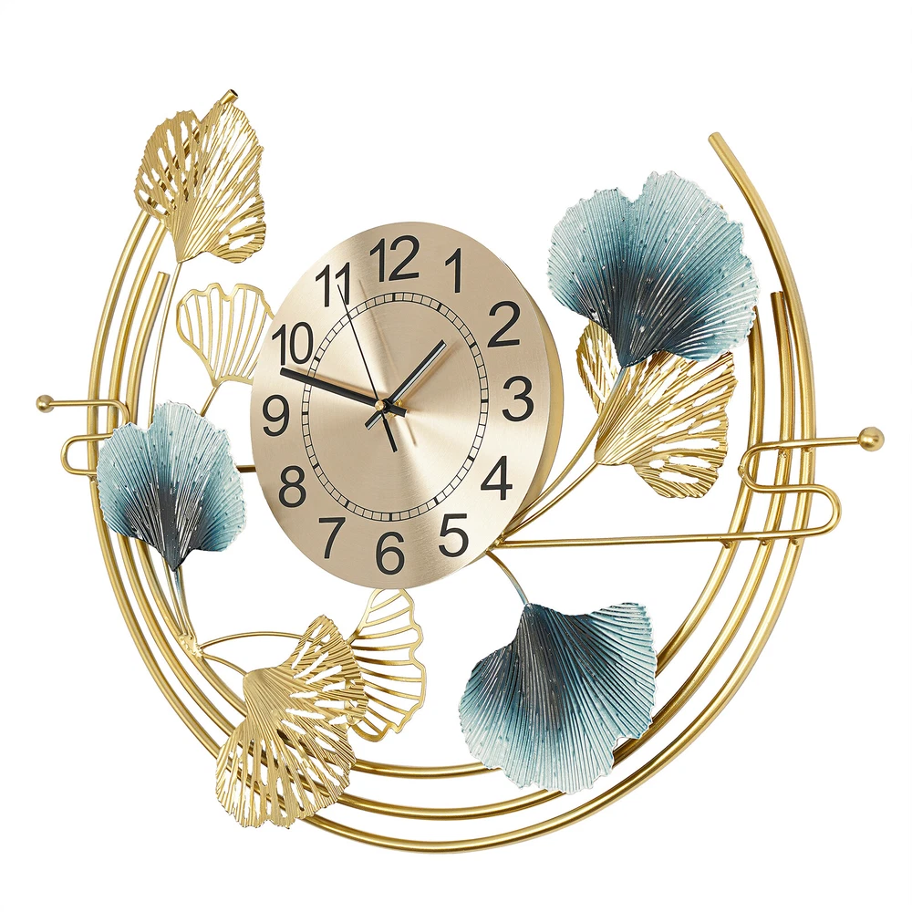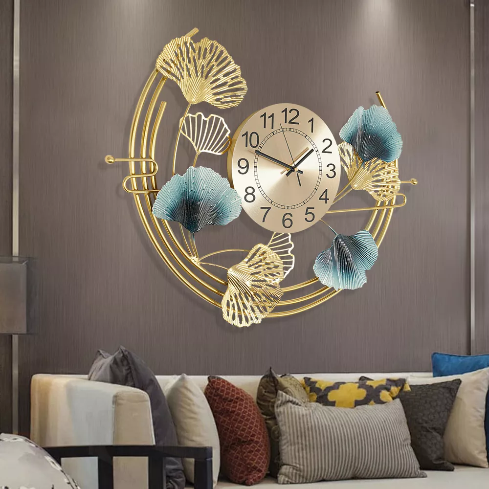 Large Wall Clock for Living Room Decor Decorative Wall Clock Gift! Description Life requires a sense of ritual. This wall clock combines modern and light art with a minimalist design, adding elegant and contemporary elements to your living space. Use it to shape a tasteful and comfortable space, advocate a quality life, and bring you a good mood! Key Features Build to Last: It is made of high-class iron with a baking paint process which is not easy to wear, deform, or fade, rust-resistant, eco-friendly. Enjoy Quiet: It features a silent movement without making extra noisy sounds, giving you and your family a peaceful evening and leisure time. Easy to Read: It features a wide round dial with clear Arabic numerals(1-12)and large black-colored hands for comfortable, at-a-glance reading. Fancy Decoration : The simple round clock dial with gold and blue ginkgo biloba exudes a unique artistic flavor, adds elegance and enhances the taste of the home space. Simple Installation : The simple construction and a hanging slot on the back of the product allows you to add modern style to your home or workspace in just a few minutes. Easy to Clean: Thanks to its smooth surface and simple construction, you can wipe the surface clean of stains with a rag. Time Witness: The wall clock records every second of the warm moments you spend with your family. It is the witness of your good memories. Ideal Gift: With the aesthetics and practicality, you can give it to your friends as a Christmas, holiday, or housewarming gift. Details Round Edges: The smooth edges enhance safety during installation. Enclosed Gear Compartment: The enclosed design protects the gear compartment from water splashing and dust accumulation, making it safer to use and easier to clean. Application It is suitable for the living room, entrance, corridor, office, study, bedroom, dining room, hall, lounge, kitchen, loft, cafe, and other occasions. How to Install 1. Use a ruler (not included) to measure the distance of the hooks and mark the holes on the wall with a pen. 2. Use a drill bit (not included) to mark the holes. 3. Insert the expanded plastic plug into the hole. 4. Put the nails into the plastic plug to hang the clock. Specification Color: Gold and Blue Shape: Round Style: Modern Material: Iron Process: Baking Paint Mounting Type: Wall Mount Power Source: Battery Powered Battery Type: 1*AA Carbon Battery(Not Included) Time Indication: 1 Lap for 12 Hours Clock Diameter: 22cm/8.66in Product Size(L*H): 67*52cm/26.38*20.47in Package Size: 72*58*8cm/28.35*22.83*3.15in Gross Weight: 2.2kg/4.85lbs Net Weight: 2kg/4.4lbs Package Included 1* Wall Clock Other Accessories for Use Notes Please use 1 AA carbon battery (not included), and do not use high-performance batteries such as alkaline batteries that will affect the life of the movement and sometimes even the accuracy of the time. If the time is inaccurate during use, please replace the battery in time. If you want to install it on tiles, please install it at the joints to avoid damaging the surface of the tiles. If the product accidentally sticks to acid (e.g. sulfuric acid, vinegar) or alkali (e.g. nail polish, soapy water, soda), you should immediately rinse off the stained area with water and then dry it with a dry cotton cloth(not included). We recommend using cotton fabric as a rag to wipe the surface of the product. Please avoid direct sunlight on the product from windows. Please allow the slight color difference caused by the shooting light and 1-3cm error due to manual measurement, and make sure you do not mind before you place the order. Payment Delivery details Terms of sales About us Contact us Payment We accept ebay payment 。 Fees such as import duties, taxes are not included in the item price or shipping costs. These charges are the buyer's responsibility. Delivery details Shipping: 2-9 working days to: USA Terms of sales We maintain high standards of excellence and strive for hundred percent customer satisfaction. Feedback is very important to us. We hope that you contact us immediately before you give neutral or negative feedback, so that we can address your concerns. It is impossible to address issues if we do not know about them! About us Your satis faction is our ultimate goal. We work hard to earn your trust and future business. Our certified technicians have tested each item before shipping. The unit comes with 1 year limited warranty on all manufacturing defects. a) If you receive a defective item, you may return it or ask for a discount. Please contact us within 14 days after you receive the package. b) What you returned must be intact and in its original packaging as re? u. Customer is responsible for shipping costs of the returned item. c) We will cover the cost of shipping back t with the shipping rate indicated in the registration page. We will send you a new unit or refund the full payment you paid. Thank you. Contact us Business Hour Business Hour: Monday To Friday: 8:30 AM to 5:00 PM (Beijing China time) Due to time zones, our reply to your questions may not be immediately. But within above working time, we will reply your email within 24 hours. If it's non-workdays, please kindly be patient and wait till Monday. Please contact us with ebay message. Please feel free to contact us if you have any questions. Monday To Friday: 8:30 AM to 5:00 PM (Beijing China time) Due to time zones, our reply to your questions may not be immediately. But within above working time, we will reply your email within 24 hours. If it's non-workdays, please kindly be patient and wait till Monday. Please contact us with ebay message. Please feel free to contact us if you have any questions.