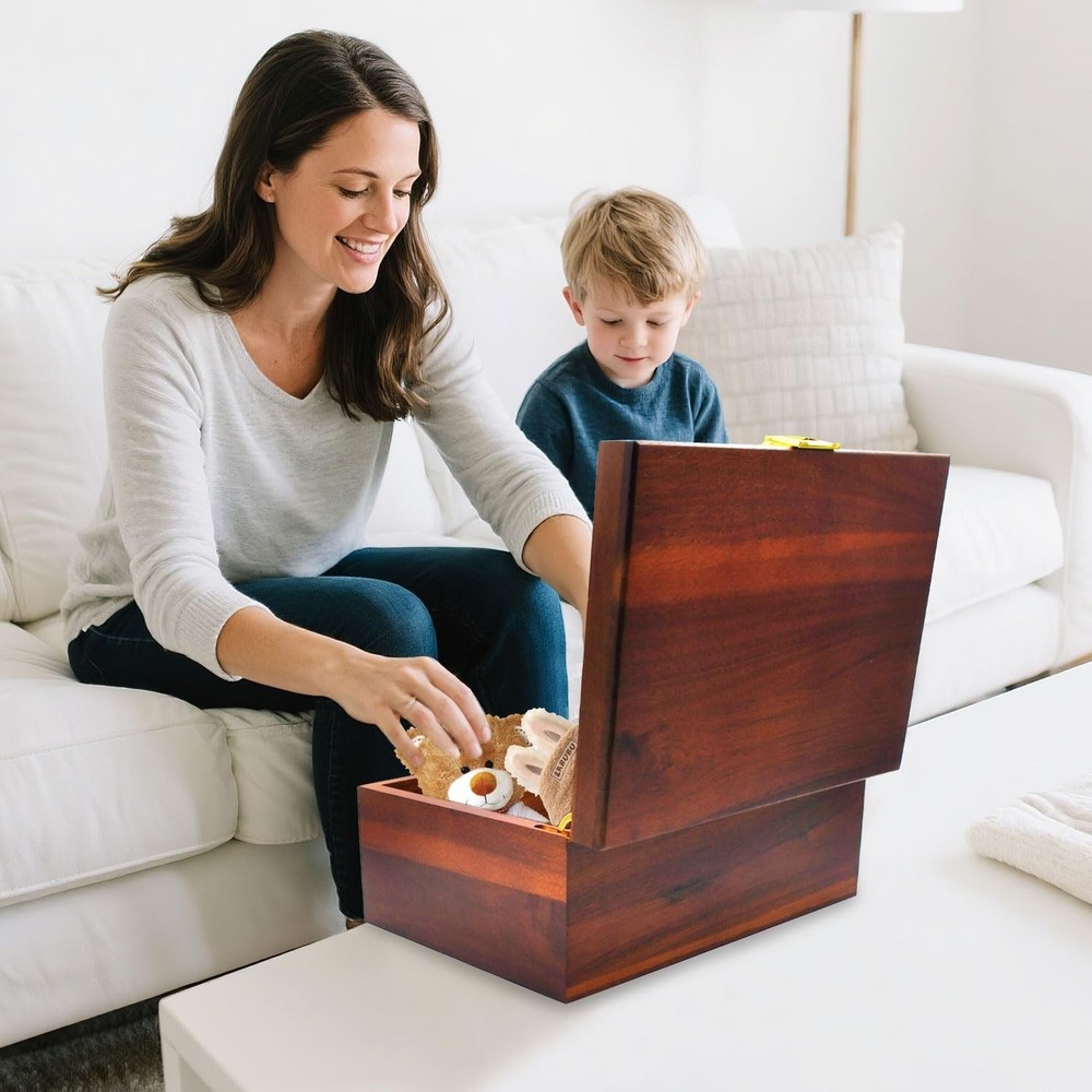 Large Wooden Storage Box with Hinged Lid, Wood Keepsake Chest, Perfect for Storing Souvenirs, Jewelry, Tools, Clothes, Recipes, Receipts, Small Accessories, etc, 11" x 8.5" x 5.1", Vintage Product Details Color: Vintage Brand: Itvexeme MPN: Acbox001 UPC: 749877312877 EAN: 0749877312877 Brand: Itvexeme Color: Vintage Material: Acacia Special Feature: Handmade, Hinged Lid, Retro Design Style: Retro Brand: Itvexeme Color: Vintage Material: Acacia Special Feature: Handmade, Hinged Lid, Retro Design Style: Retro Recommended Uses For Product: Jewelry Storage, Keepsake Storage, Recipe Card Storage Product Dimensions: 11"L x 8.5"W x 5.1"H Capacity: 288 Cubic Inches Closure Type: Hinged lid Water Resistance Level: Not Water Resistant Item Weight: 2.87 Pounds Opening Mechanism: Hinge Shape: Rectangular Pattern: Retro Number of Items: 1 Storage Volume: 128 Cubic Inches Number of Compartments: 1 Unit Count: 1.0 Count Item Package Quantity: 1 Material Feature: Durable, Handcrafted, Retro UPC: 749877312877 Manufacturer: Itvexeme Item Weight: 2.87 pounds Item model number: Acbox001 Special Features: Handmade, Hinged Lid, Retro Design Included Components: Hinged Lid, Storage Box Batteries Included?: No Batteries Required?: No Date First Available: May 14, 2025 HANDCRAFTED DESIGN: Beautiful acacia wood storage box featuring traditional handmade construction with a classic retro aesthetic. Large wooden storage box measures 11 x 8.5 x 5.1 inches. VERSATILE STORAGE: perfect for storing souvenirs, jewelry, tools, clothes, recipes, receipts, small accessories, etc CONVENIENT ACCESS: Equipped with a sturdy hinged lid that allows for easy opening and secure closing when not in use PREMIUM MATERIAL: Constructed from high-quality acacia wood known for its natural durability and distinctive grain patterns DECORATIVE APPEAL: Elegant wooden box that serves both as functional storage and an attractive decorative piece for any room Premium After-Sales Service: We offer a 24-month warranty to ensure the best service for you. If you encounter any issues, damages, or find the product unsuitable, We provide comprehensive after-sales support and will strive to resolve your concerns promptly.