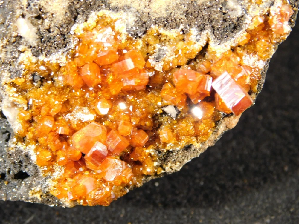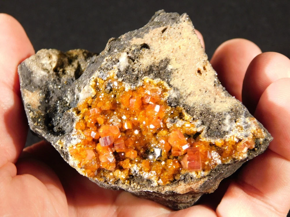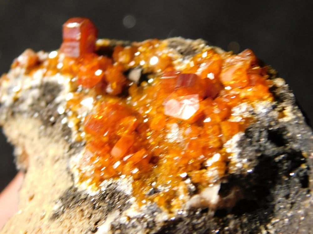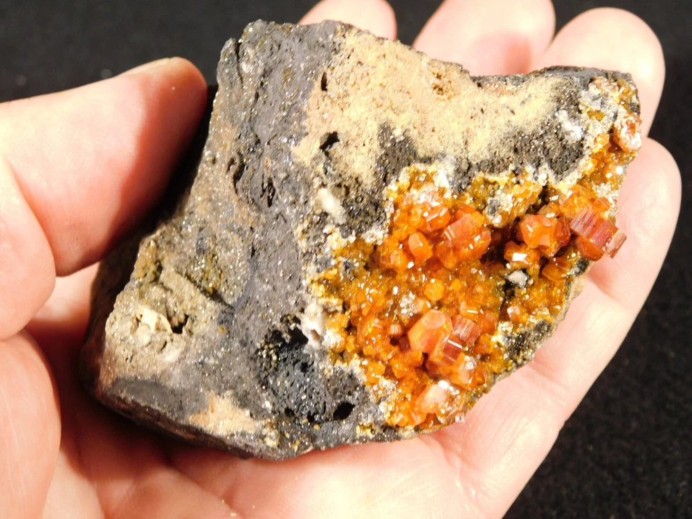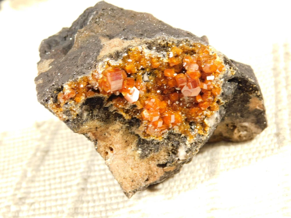 Hello, here is a Larger! 100% natural Vanadinite Crystal cluster with PERFECT shiny DEEP ORANGE crystals on a contrasting BLACK colored matrix! This cluster was mined in Morocco. Please note that this piece is WAY nicer in person as it is difficult to get all of the detail and true colors to show up in the photos! The overall cluster or matrix measures around 3 3/8" or 8.35cm at its biggest or from opposing side to side. INTERNATIONAL BUYERS PLEASE NOTE : Import duties and taxes are not included in the price of the item or the shipping charges. These are the buyers responsibility. If you are concerned about them, please check with your country's customs office before purchasing. RETURN POLICY We guarantee you will be satisfied with your item or we'll refund your purchase price, less shipping charge, upon safe return of the item in original condition within 14 days. Prior to returning the item, please contact within 48 hours of receiving item. Buyer is responsible for all return shipping charges.
