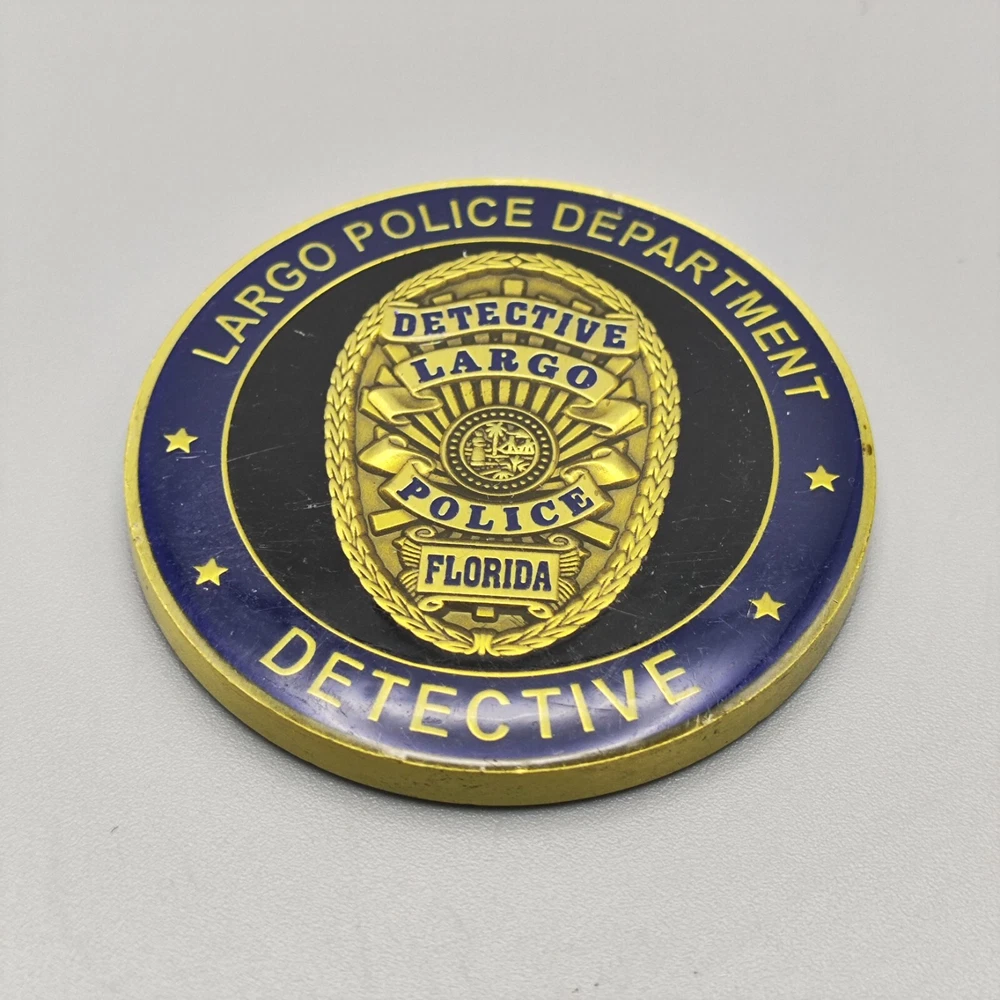 TITLE-- Largo Florida Police Department Investigative Services Division Detective Coin SIZE-- Measures approx. 1.74 inches Used coins have imperfections, please see pictures SHIPPING -- Ships within 5 days of receiving payment. Your purchase will be carefully packaged and you can always check tracking information on eBay Purchase two and more and get a discount on shipping SERVICES -- If you have any questions, you can contact us at any time, we will reply you as soon as possible to solve your problem If you are not satisfied with your purchase for any reason, please contact us before leaving neutral or negative feedback, we will solve the problem for you properly