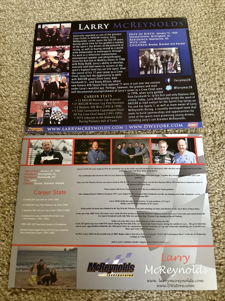 Larry McReynolds Both Signed FOX Sports Broadcaster . Shipped with USPS Ground Advantage.
