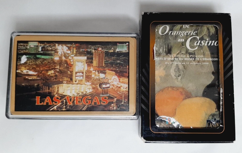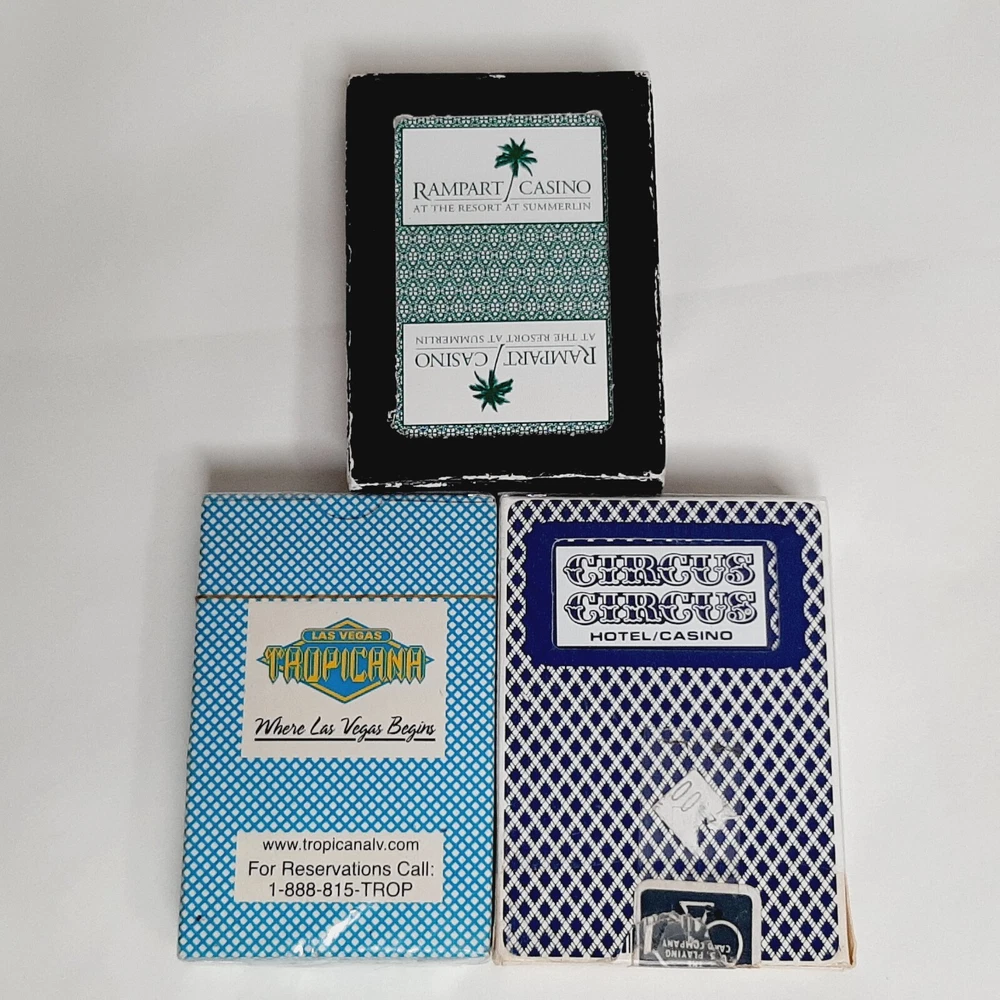 Las Vegas Casino Playing Cards Bundle Lot of 21 Gambling & Poker Decks Good condition - all decks have their seal intact or are factory sealed in plastic; plastic is starting to come off one of the Riviera decks; exterior condition varies by deck with most being in good shape; some may show signs of wear including small rips; may have minor damage from price tags or partial price tags that can be removed at your discretion