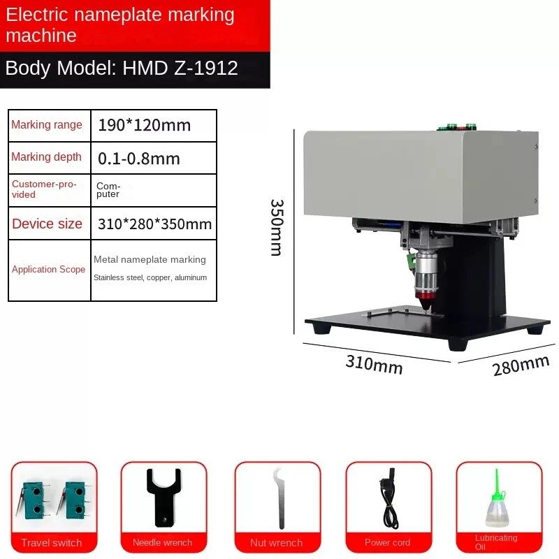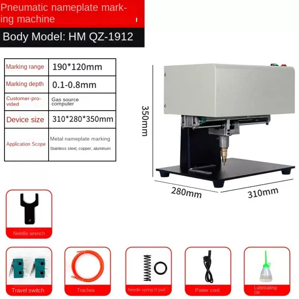 Laser Pneumatic Electric Marking Machine Metal Nameplate Engraving Machine Stainless Steel Parts Desktop Small 190X120 MM Product name: Metal nameplate marking machine Condition: Brand new color: gray Marking range: 190*120MM Marking depth: 0.1-0.8MM Specifications: pneumatic/electric Size: 310*280*350 Application scope: metal nameplate marking Stainless steel, bronze, aluminum