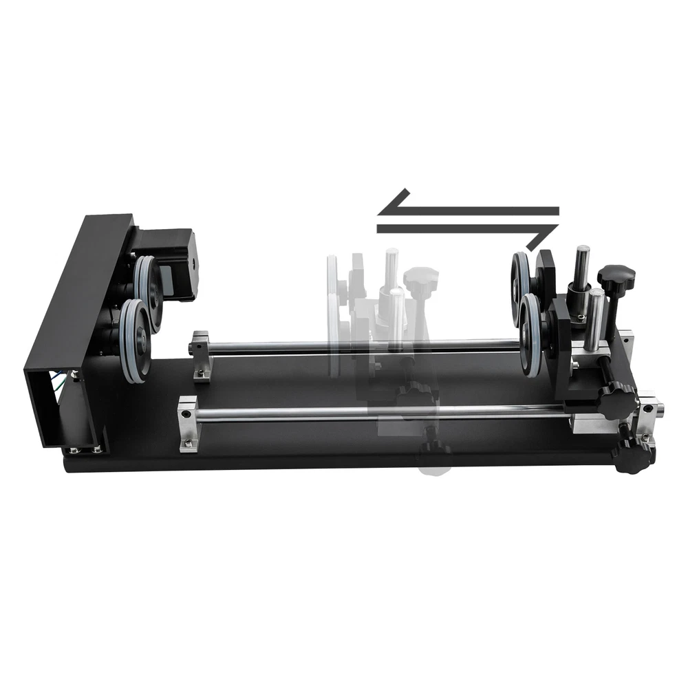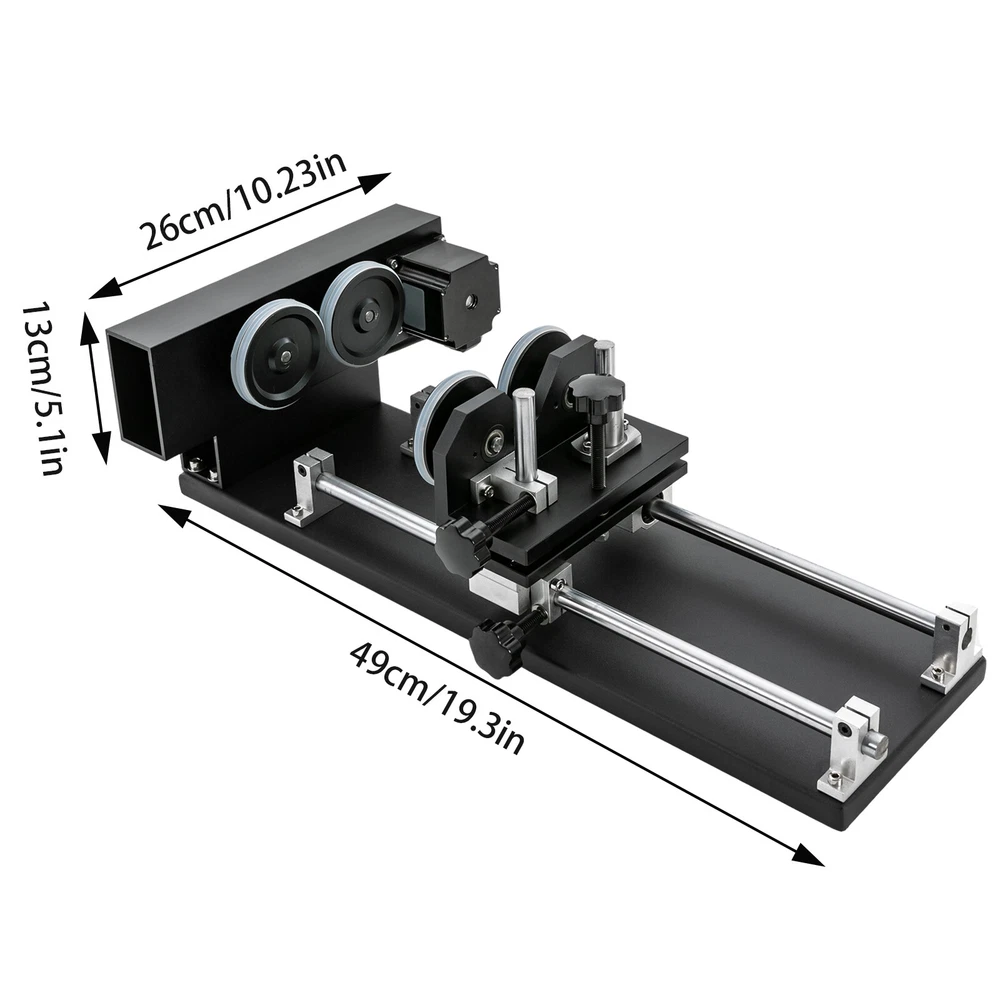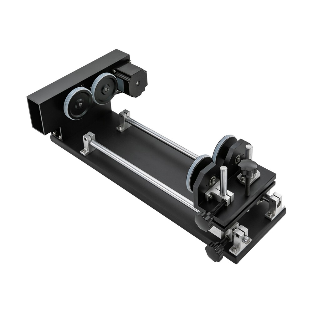 Details Rounded Corners: The rounded edges are burr-free, which is comfortable to touch and can care for your skin. Multiple Knobs: The plum-shaped knobs allow for easy and convenient adjustment without slipping. Application It is suitable for personal DIY, home, or business. It can be used in conjunction with a 50W, 60W, 80W, 100W, and 130W CO2 laser engraver for 360° engraving of cylindrical and round objects, including beverage cans, eggshell cups, goblets, wine bottles, baseballs, baseball bats, cups, bottles, flutes, gourds, tubes, pipes, bowls, etc. How to Carve a Cylindrical Object 1. Connect the motor on the rotary axis to the drive (Y-axis on the machine). Please make sure the phase is matching. If your motor driver on the machine is 2-phase(Port A+, A-, B+, B-); th Laser Rotary Axis for 50W 60W 80W 100W 130W CO2 Laser Engraver Cutter Laser Engraver Rotary Attachment, Rotating Carving Fixture, Laser Rotary Attachment Rotary Axis Description As a skilled engraving worker, the laser carving rotary axis would be an ideal addition to your toolset! It allows for accurate and efficient marking of small areas, maximizing your productivity while delivering precision. Not only that, but it has an engraving diameter of 0.4-5.9" and an engraving length of 1.97-13.78", providing you with maximum versatility. Get yours today and start enhancing your DIY projects with this must-have tool! Key Features Build to Last: It is crafted from high-quality aluminum alloy and steel with anodizing and chamfering processes, which is corrosion-resistant and rust-proof , maintains long-term brightness and performance, and has a long service life. Powerful Function: The 2-phrase stepper motor with an adjustable speed of 10-200rpm allows it to work with lasers for high precision and more comprehensive marking. DIY Carving: The 3.15-5.12 inches axis height makes it carve lengths of 1.97-13.78 inches, carving diameters of 0.4-5.9 inches, and applicable workpiece diameters of 0.4-5.9 inches, meeting your DIY carving needs. With it, you can achieve 360° bi-directional rotary marking, which is convenient. Ready to Go: This tool comes with a 4-wire connection cable that can be connected to a dedicated port on a laser engraver, making it easy to engrave. Simply configure the software settings and start engraving. The tool is also pre-assembled and modular, which saves valuable engraving time. Stable Structure: The rubber pads on the bottom can effectively prevent slipping and improve the stability of the product when used. Easy to Clean: Thanks to its smooth surface and skeletonized structure, you can clean it with a soft rag. Protective Package: We use the sponge to wrap our product, aiming to maximize the protection of the product from damage during transportation. Buy with Confidence: We are honored that you have chosen our product. We have sufficient confidence in the quality of the product so that you can buy it confidently. But if you have any questions, you can contact our customer service, he will patiently answer and solve your problems. Details Rounded Corners: The rounded edges are burr-free , which is comfortable to touch a nd can care for your skin. Multiple Knobs: The plum-shaped knobs allow for easy and convenient adjustment without slipping. Application It is suitable for personal DIY, home, or business. It can be used in conjunction with a 50W, 60W, 80W, 100W, and 130W CO2 laser engraver for 360° engraving of cylindrical and round objects, including beverage cans, eggshell cups, goblets, wine bottles, baseballs, baseball bats, cups, bottles, flutes, gourds, tubes, pipes, bowls, etc. How to Carve a Cylindrical Object 1. Connect the motor on the rotary axis to the drive (Y-axis on the machine). Please make sure the phase is matching. If your motor driver on the machine is 2-phase(Port A+, A-, B+, B-); the 3-phase motor's port is U, V, and W. 2. Enable rotation in the software(not included) and set the correct values for engraving part diameter and circle pulse. The rotary reduction ratio is 1:2. Specifications Material: Aluminum Alloy, Rubber and Steel Process: Anodizing and Chamfering Motor Type: 2-Phase Stepper Motor Mounting Type: Freestanding Color: Black Rotation Type: Roller Power Source: Corded Electric Adjustable Speed: 10-200rpm Gross Weight: 10kg/22lbs Net Weight: 9kg/19.84lbs Axis Height: 80-130mm/3.15-5.12in Engraving Diameter: 10-150mm/0.4-5.9in Engraving Length: 50-350mm/1.97-13.78in Applicable Workpiece Diameter: 10-150mm/0.4-5.9in Package Size: 67*20*27cm/26.38*7.87*10.63in Product Size: 49*26*13cm/19.3*10.2*5.1in Package Included 1* Laser Rotary Axis Notes Please note that the laser machine is not included in this product. This item is a roller 2-axis (with a 2-phase stepper motor) with 4 leads , please confirm before ordering. Please allow the slight color difference caused by the shooting light and 1-3cm error due to manual measurement, and make sure you do not mind before you order. Payment Delivery details Terms of sales About us Contact us Payment We accept ebay payment 。 Fees such as import duties, taxes are not included in the item price or shipping costs. These charges are the buyer's responsibility. Delivery details Shipping: 2-9 working days to: USA Terms of sales We maintain high standards of excellence and strive for hundred percent customer satisfaction. Feedback is very important to us. We hope that you contact us immediately before you give neutral or negative feedback, so that we can address your concerns. It is impossible to address issues if we do not know about them! About us Your satis faction is our ultimate goal. We work hard to earn your trust and future business. Our certified technicians have tested each item before shipping. The unit comes with 1 year limited warranty on all manufacturing defects. a) If you receive a defective item, you may return it or ask for a discount. Please contact us within 14 days after you receive the package. b) What you retur