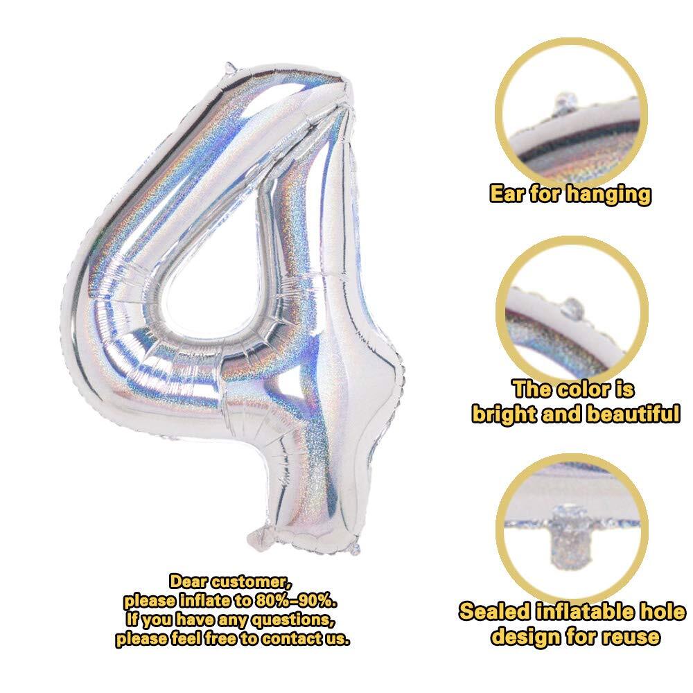 Laser Silver 4 Balloons,40 Inch Birthday Foil Balloon Party Decorations Supplies Helium Mylar Digital Balloons (Laser Silver Number 4) π Package Included:1 Balloons(uninflated) + Straw π Material: aluminum film nylon, not easy to explode and leak, bright colors, full of numbers. Ideal for children's birthday parties! π There have holes on the top to string together or to hang;Can be deflated with a straw to facilitate repeated balloon use π This foil balloon is helium quality and suitable to inflate with both helium or air. π Organizing your son or daughter first birthday party? Looking for something to spice up your event? These Birthday Party Supplies are of great choice. Make your party trendy. π Package Included:1 Balloons(uninflated) + Straw π Material: aluminum film nylon, not easy to explode and leak, bright colors, full of numbers. Ideal for children's birthday parties! π There have holes on the top to string together or to hang;Can be deflated with a straw to facilitate repeated balloon use π This foil balloon is helium quality and suitable to inflate with both helium or air. π Organizing your son or daughter first birthday party? Looking for something to spice up your event? These Birthday Party Supplies are of great choice. Make your party trendy. Shipping from the USA All of our products are shipped from the USA, ensuring quick delivery to your destination. Payment We offer the following payment methods: PayPal, credit card, bank transfer, and eBay's secure payment system. Free Shipping & Free Returns Shipping within the USA is FREE. Additionally, any return is absolutely free for you. Risk-Free Purchase You have the option to return an item within 30 days without any justification. We cover the return shipping costs! Fast Shipping We ship immediately upon receipt of payment. Generally, the package is delivered within 2-3 days in the USA. If it takes longer, we will contact you. Quality and Costs Made in Europe, USA, China No customs fees or additional charges Total satisfaction guarantee Invoice with declared VAT available upon request in .pdf format Feedback Your feedback is very important to us. After you pay for your purchase, you will automatically receive positive feedback from us.