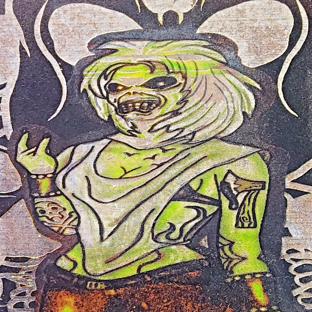 Laser engraved girl wearing eddie mask iron maiden digital mdf art print 5x7 L