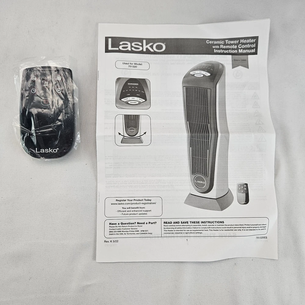 May come with different serial numbers and may not have a packaging bag. The first photo is provided in good condition, but others may be with missing packaging items, but the item itself is good. I am selling (New open box) Lasko Oscillating Ceramic Tower Space Heater for Home with Adjustable Thermostat, Timer and Remote Control, 22.5 Inches, Grey/Black, 1500W, 751320. All Pictures are part of the item’s description. Please Zoom in or Enlarge Photos to get a closer look. Please note that slight color difference should be acceptable due to the light and screen. Comes from a smoke/pet free home Color: True color may vary from screen to screen and light to light. Shipping: Items ship within two business day (Monday-Friday) of cleared payment. Shipments will not occur on Saturdays, Sundays, or Holidays. Returns: Are accepted within 30 days of being received. A returned item must be in the same condition it was sent. Once the returned item has arrived, a refund will be provided within 3 business days. Shipping and handling are nonrefundable. Warranty: We make no guarantee that a manufacturers original warranty will apply to purchases. Friendly Tips: * If the product has any quality problems, please feel free to contact us, we will help you solve the problem as quickly as possible. * Thank you for viewing this listing. This item is being sold by independent resellers. We do not endorse or warranty this product. Please ask us any questions you may have, before purchasing. * Please check out our other great items we have for sale. New items are added weekly. * All of our items are sold at below market price. We understand pricing can be subjective, so all reasonable offers will be considered. * If the product has any quality problems, please feel free to contact us, we will help you solve the problem as quickly as possible. * Item is located in Missouri, MO (USA). Local Pick Up available upon request.