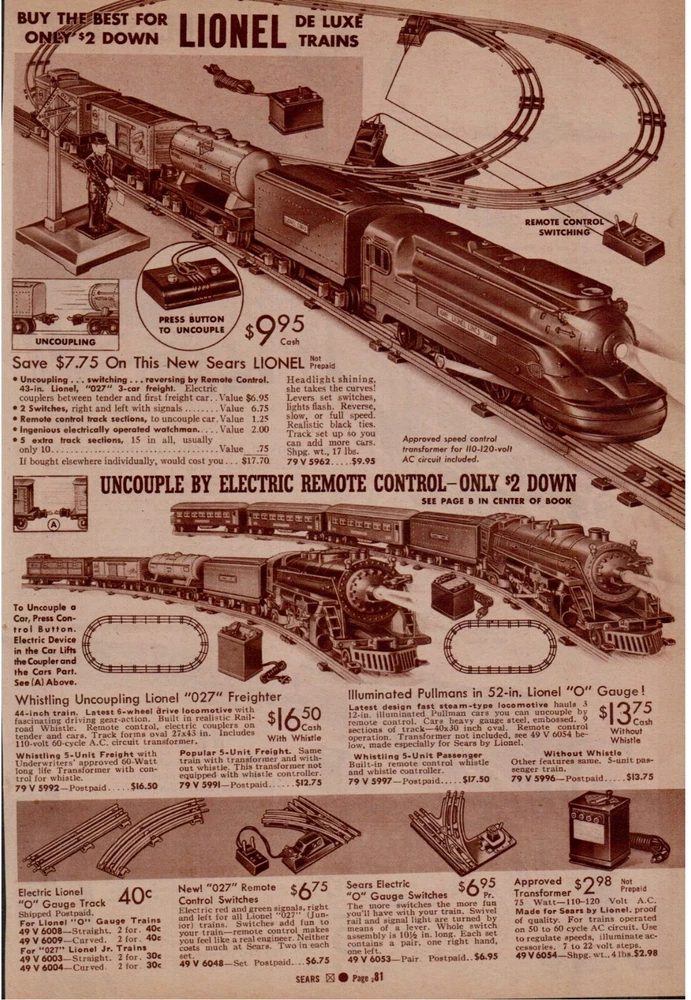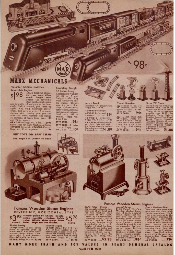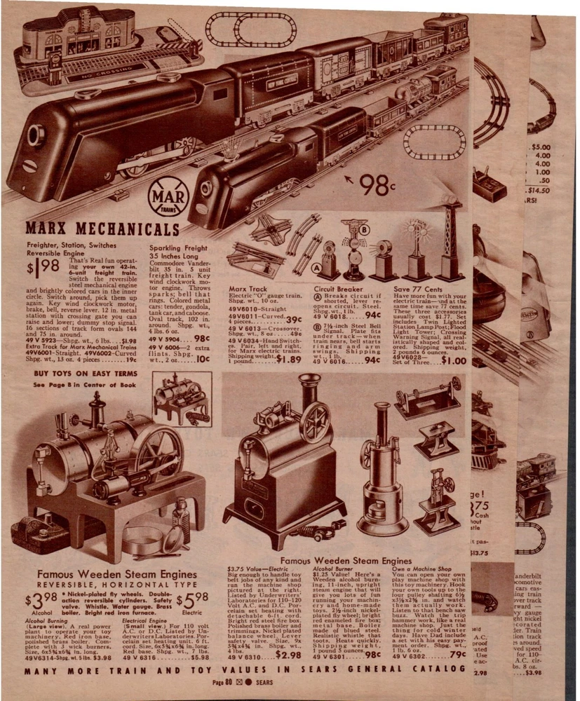 Late 1930's Sears Catalog Page #79-84 Lionel and Marx Electric Train Set Toys