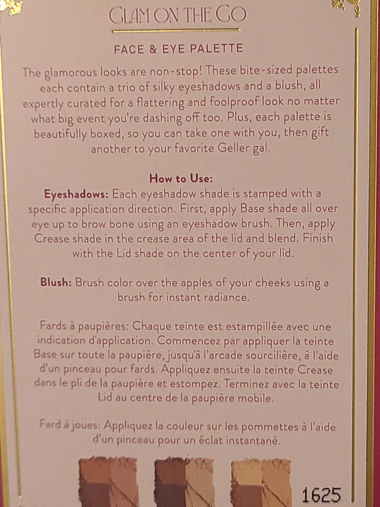 Laura Geller Glam On The Go Face & Eye Palette/Blush/Neutral Shade 3 Palatte NIB Perfect For Hooded Eyes Night Out Gifting Mature Skin The glamorous looks are non-stop with this trio of bite-sized palettes! ncludes three compact palettes with eyeshadows and blushes Expertly curated colors for a flawless look on any skin tone Stamped with easy-to-follow instructions Each palette comes individually boxed--take one with you, then gift another to your favorite Gelle