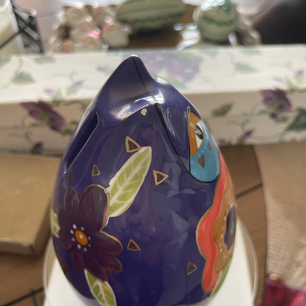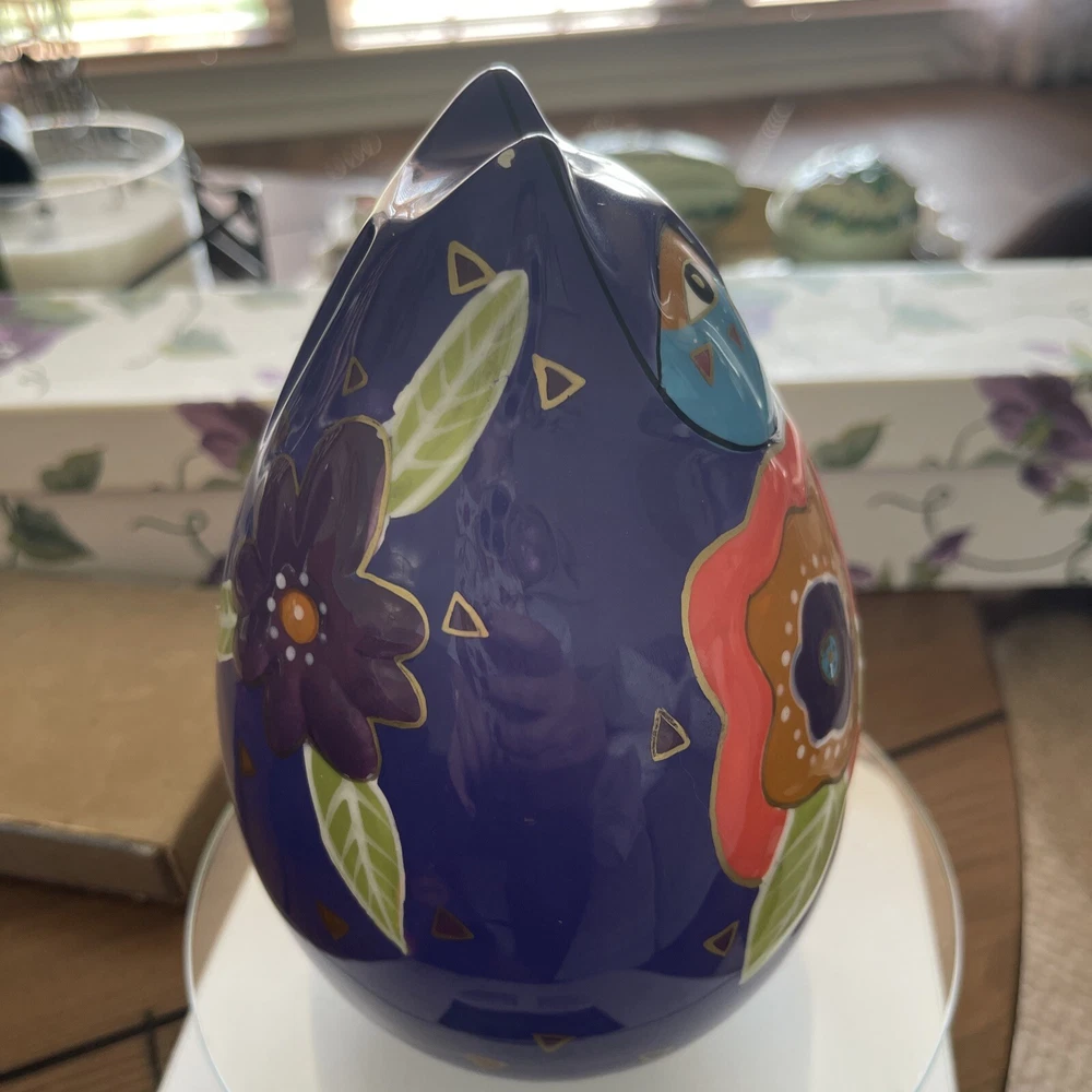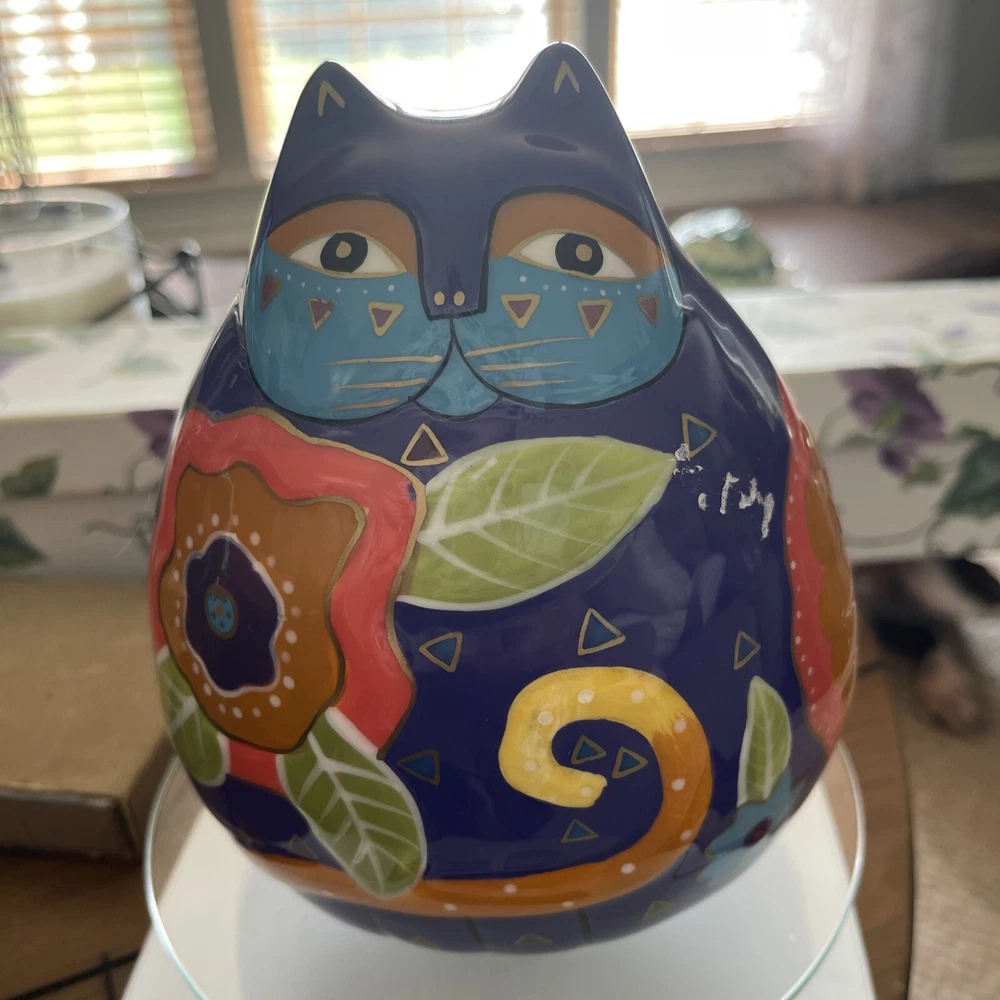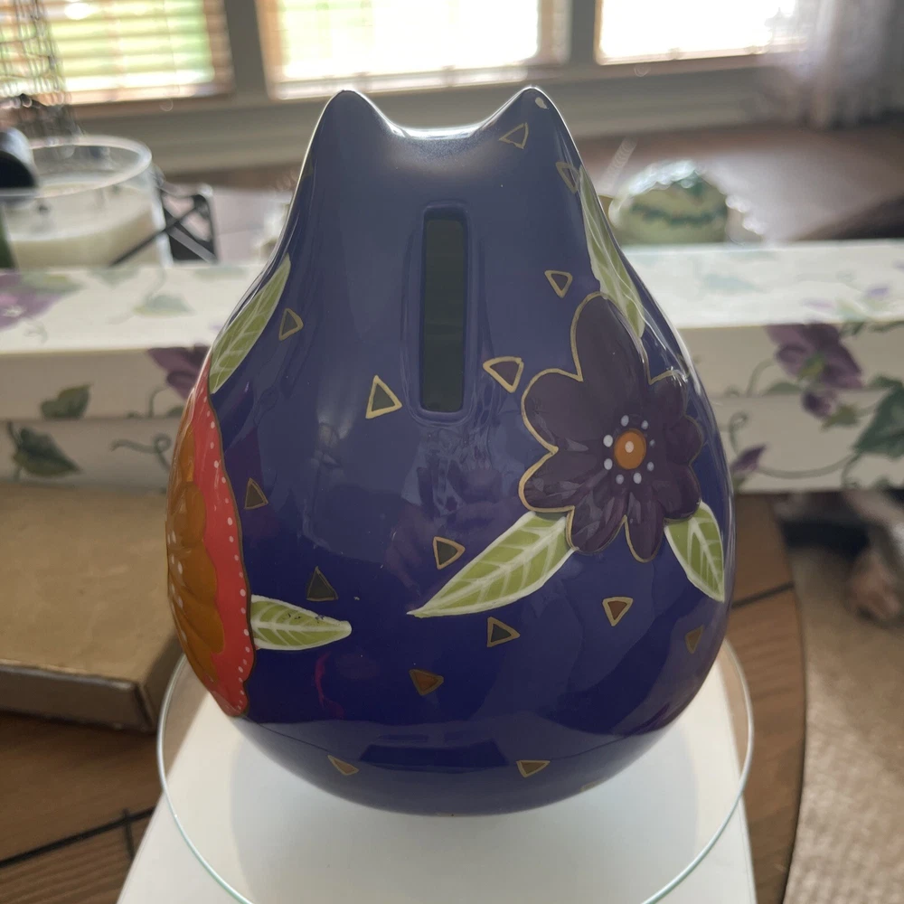Cutest piggy bank of a cat - signed Laurel Burch - has one tiny paint chip on top of ear - see picture and is missing the stopper on bottom