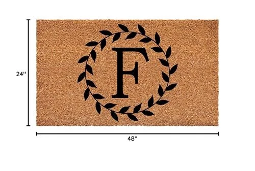 Brighten your home entry with this beautiful monogrammed doormat. Made of natural coir, a durable fiber that scrapes shoe bottoms clean, this doormat has a prominent double border that encases your initial and is vinyl backed to help prevent movement. Weather tolerant and colorfast, coir doormats absorb moisture and retain their shape. For best results, use in a sheltered area such as a covered porch, keeping extreme moisture and sunlight to a minimum. Vacuum, sweep or lightly hose clean. All-season, colorfast Durable coir that scrapes shoes clean Vinyl backing to help prevent movement