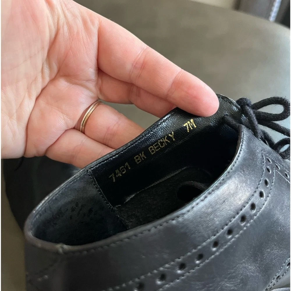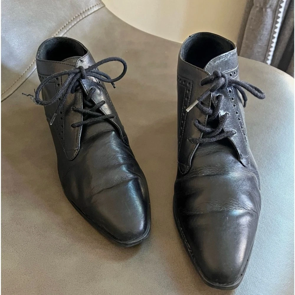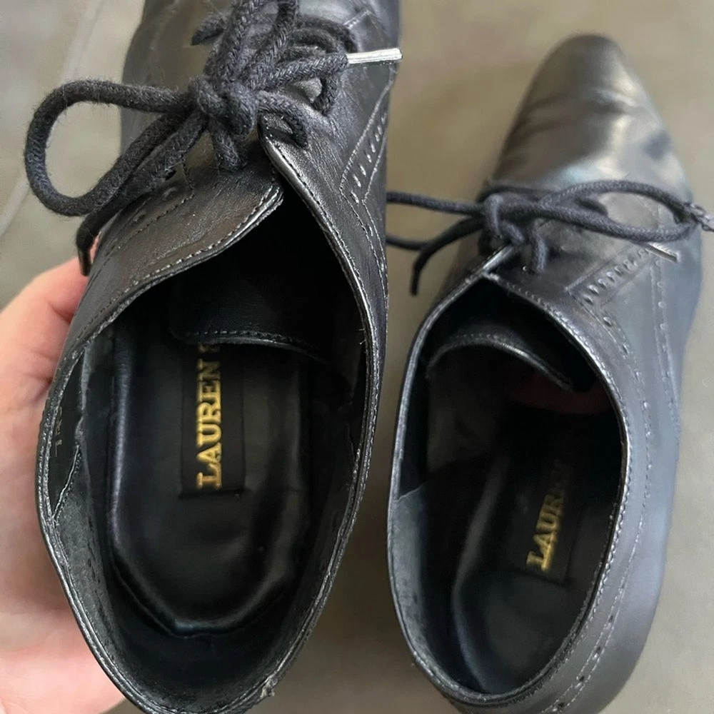 Sz 7 Lauren sport 80’s vintage bootie Lace up Oxford style Very tiny heel in back Pointed toe Genuine leather upper Black color Some wear on the bottoms, a couple of marks/scratches on exterior. The insole is coming up a bit at the toe area down inside. Some creasing Super cute!! Fun & unique I would definitely recommend these for someone with a more narrow foot. (Double check measurement of bottom sole for best fit)