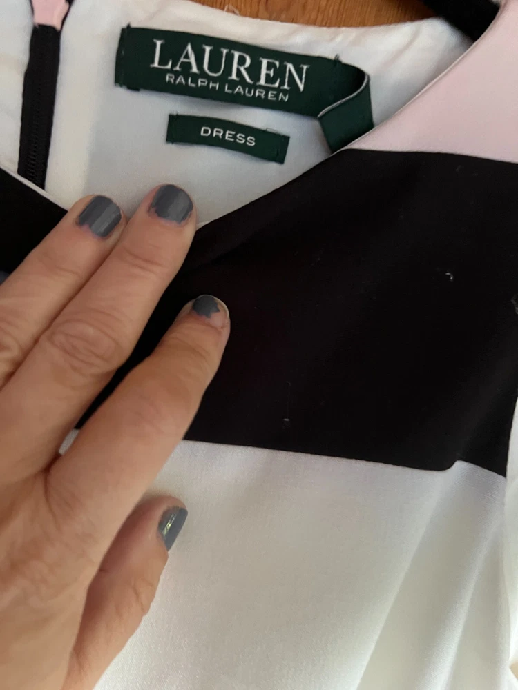 Lauren by Ralph Lauren Black/Cream/Pale pink striped dress - Size 2. Condition is Pre-owned. Shipped with USPS Ground Advantage.