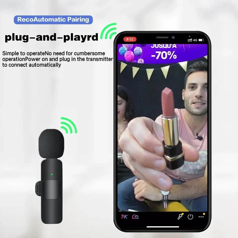 This lavalier microphone is the perfect addition to your Android or iPhone device for high-quality audio and video recording. The wireless connectivity ensures ease of use and freedom of movement, while the compact size makes it easy to carry around. Ideal for musicians and professionals alike, this mini mic is perfect for recording vocals, instruments, and more. The microphone receiver form factor ensures a secure connection and the high-quality construction guarantees long-lasting use. Whether you're a musician or a professional, this lavalier microphone is the perfect choice for your audio and video recording needs.