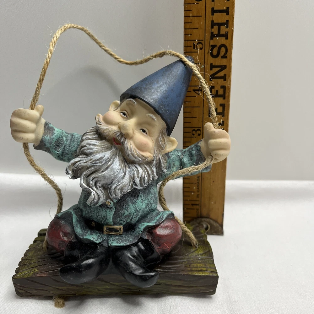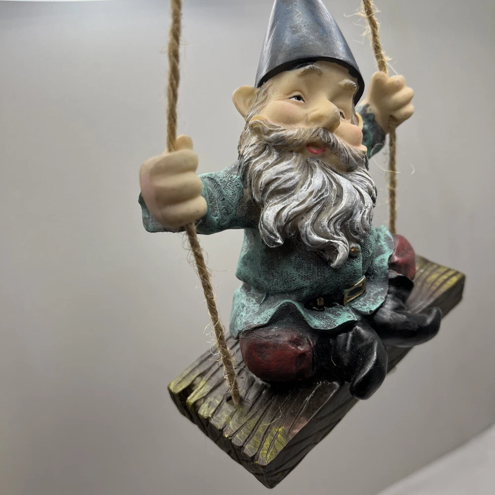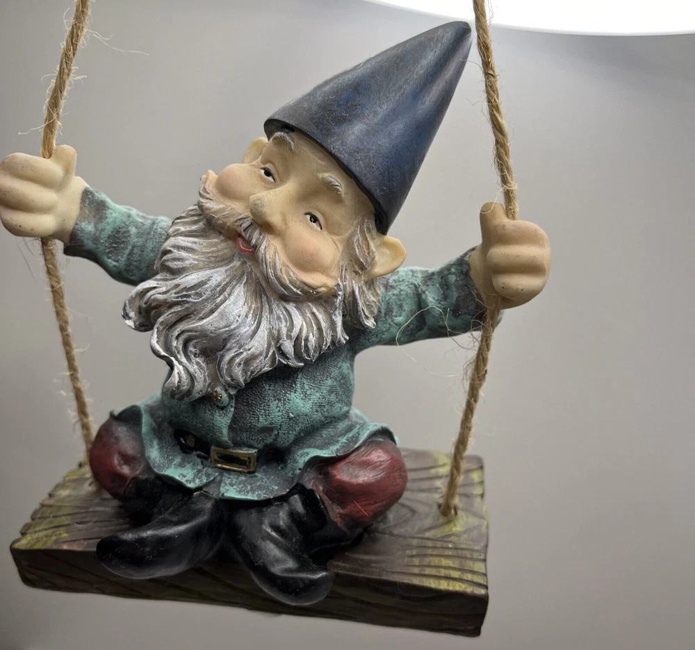 Vintage Lawn & Garden Art Decor -Gnome On A Swing by Yardwork Originals Outdoor