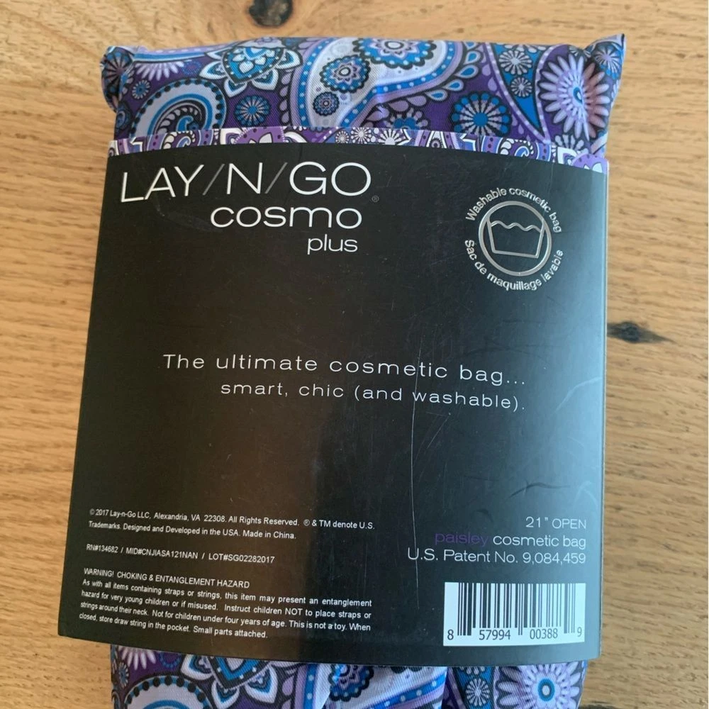 Lay N Go Cosmo Plus Purple Cosmetic Bag Open 21" Washable NWT Cosmetics Travel Vacation Purple Paisley Makeup Jewelry Ships next day from Oregon Smoke Free Flaws shown in pics if any