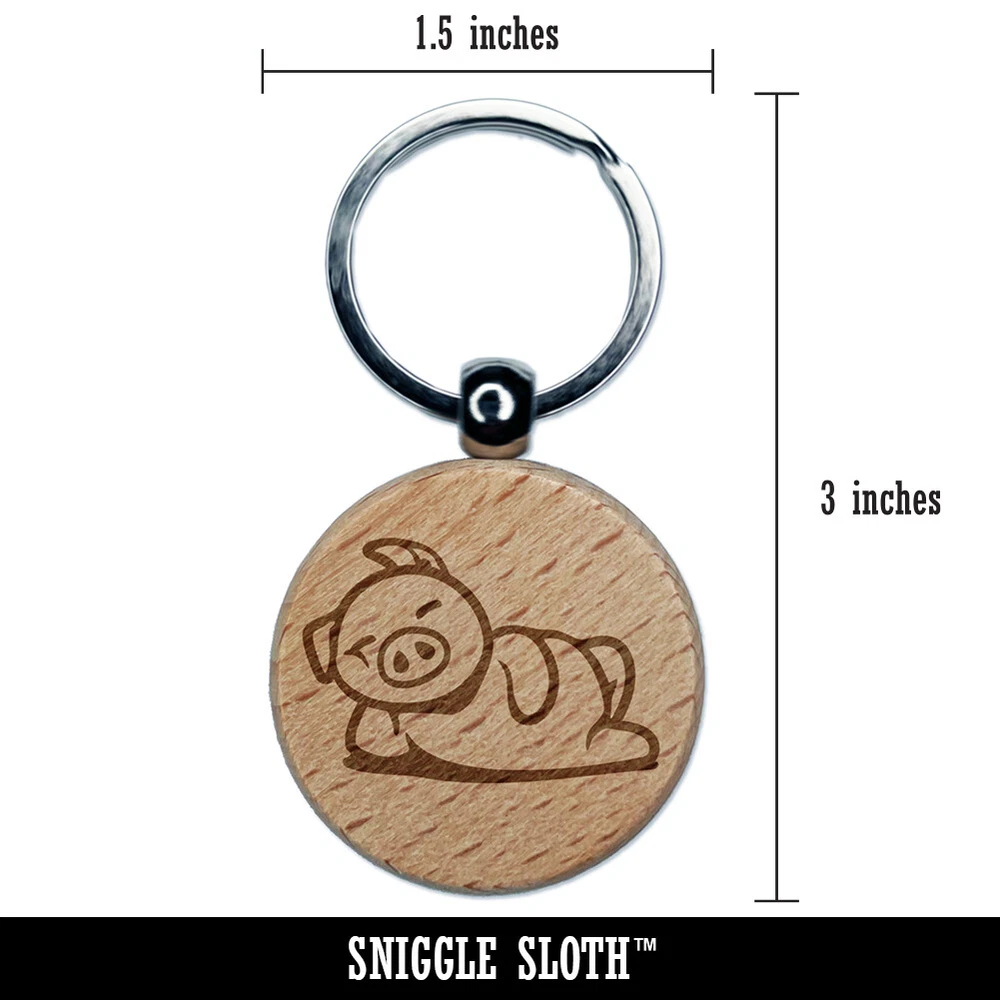 Lazy Pig Lounging Engraved Wood Round Keychain Tag Charm