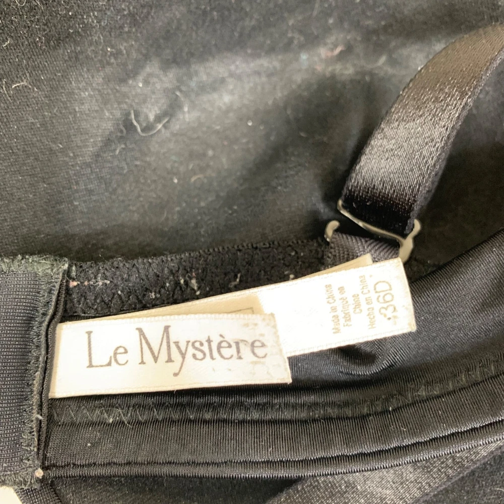 Le Mystère Black Wireless Lightly Lined Bra - Size 36D Great preowned condition! Soft, smooth, black wireless bra with adjustable straps and hook and eye closure in the back. Lightly lined. 2P15 29-3836 4 oz Tags: sexy, support, lingerie