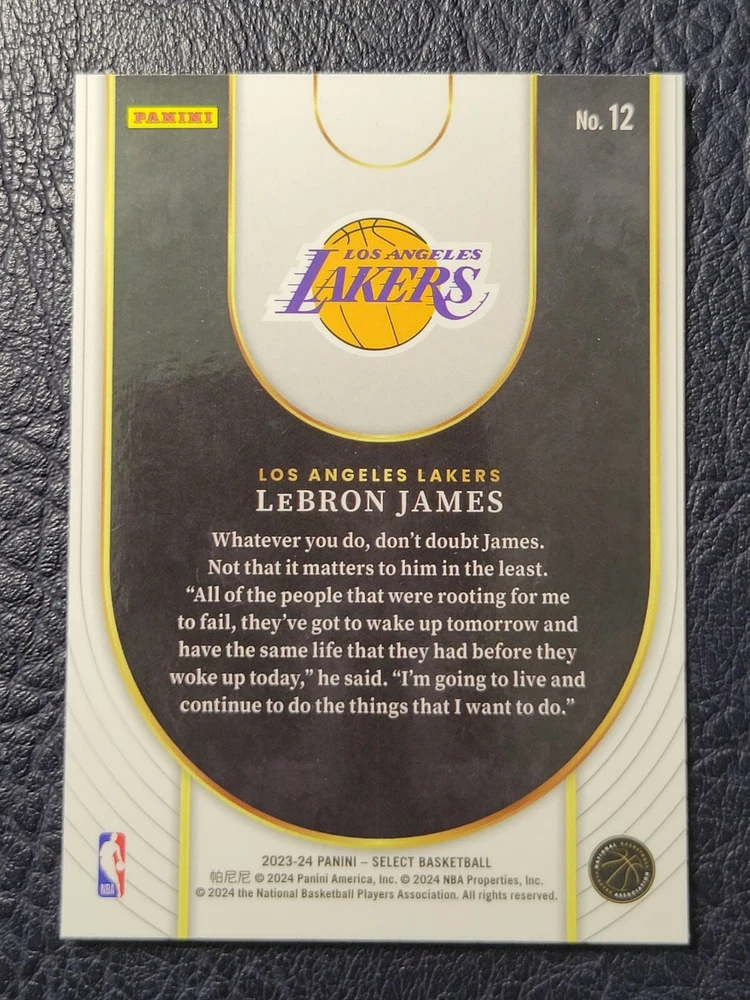 This LeBron James 2023-24 Panini Select trading card is a must-have for any basketball fan. It features the NBA legend in his Cleveland Cavaliers, Miami Heat, and Los Angeles Lakers jerseys, making it a great addition to any collection. The card is made of high-quality card stock and comes with two cards, the base set, and the insert. The card is perfect for those who love the National Basketball Association (NBA) and is a great way to commemorate the NBA Finals. This trading card is in English, manufactured in the United States by Panini, and is part of the 2023-24 Panini Select set. It is a great opportunity to own a piece of basketball history, and the perfect way to show your support for LeBron James.