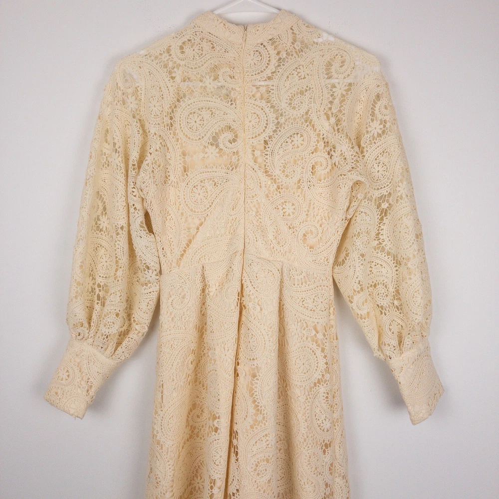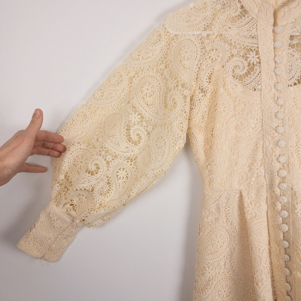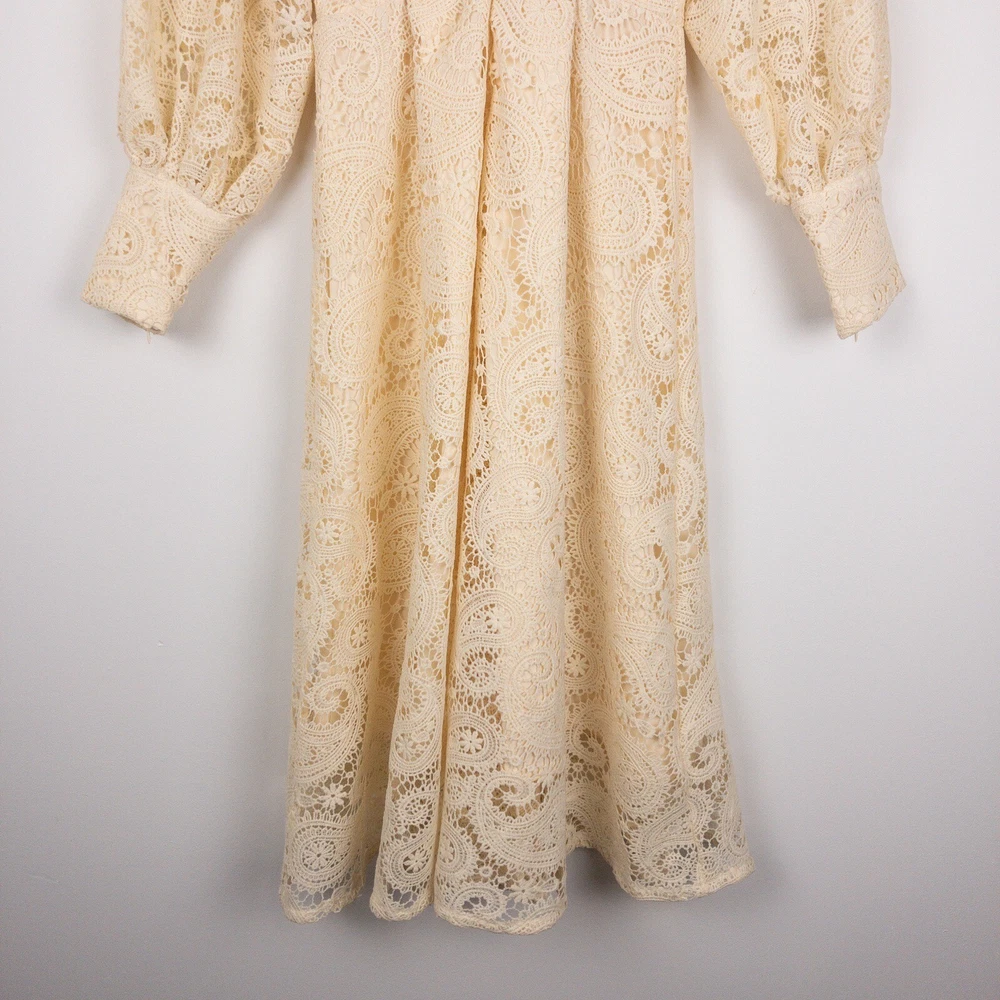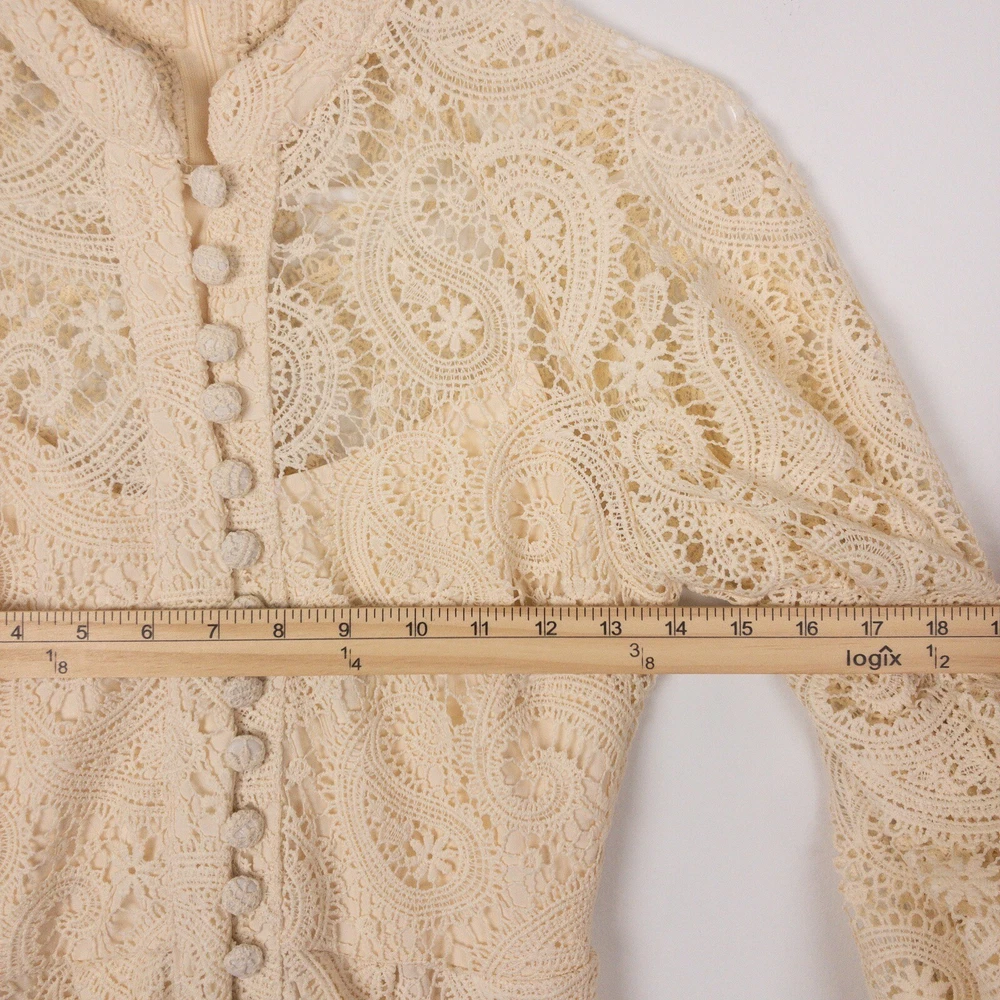 Item Description : Women's Lea Collection Dress Notes & Features : Delicate paisley lace crotchet Button front Zip back Zip up sleeves Victorian style Elegant Size : Adult Small Measurements : Please see photos. If a measurement is missing, ask and we will get it for you. Condition : Good pre-owned condition. Flaws : None found. Shipping : We always ship via the USPS with a tracking number ASAP, Monday-Saturday, and do our best to take care of you and the item at ALL times. Please see the Shipping, returns, and payments section for all available shipping options and prices. Packaging : The item is packaged/shipped in a sealed plastic bag inside of a sealed poly bag mailer. Storage : All items are stored in a smoke free home. Any questions? Please ask; we are happy to answer. Thank you for looking!