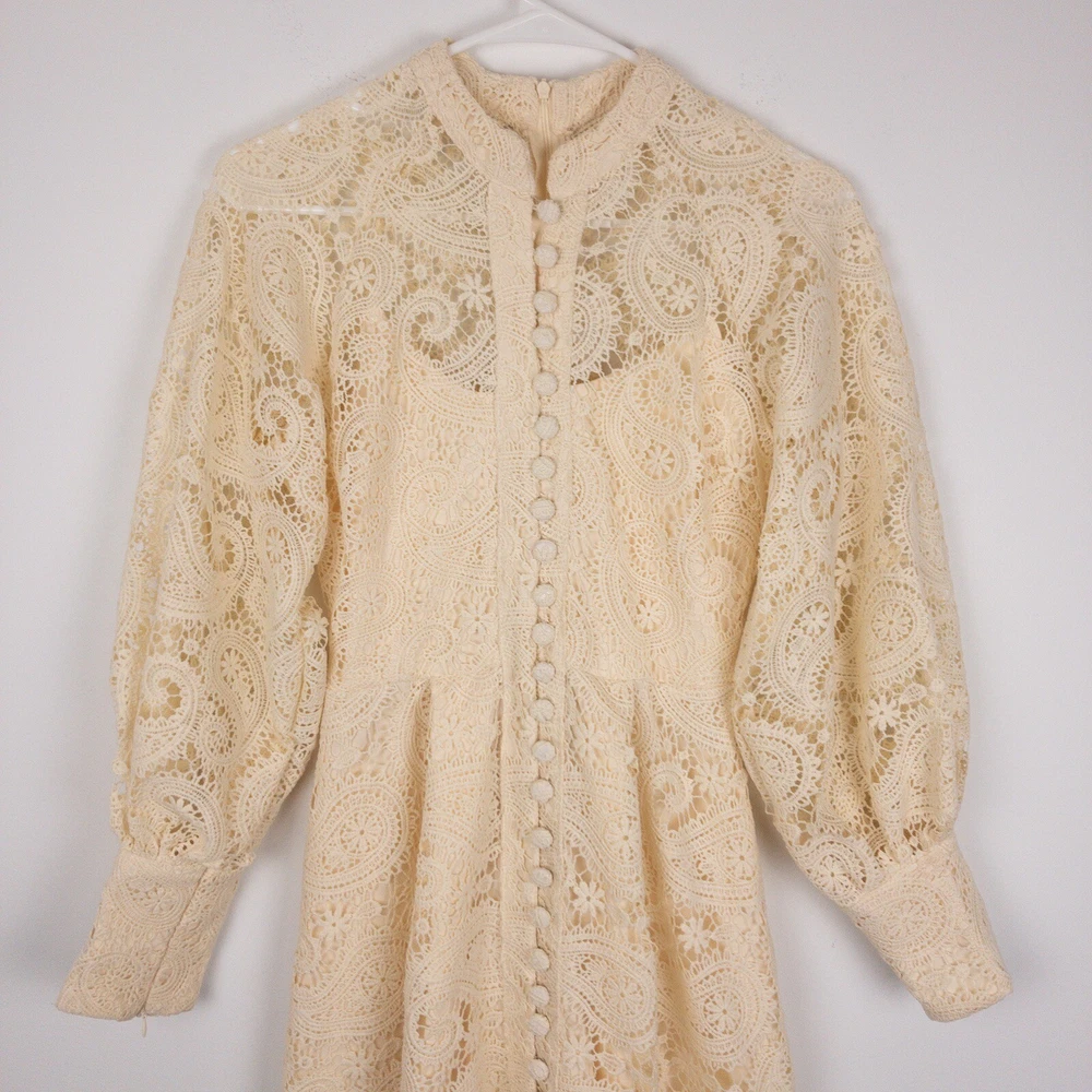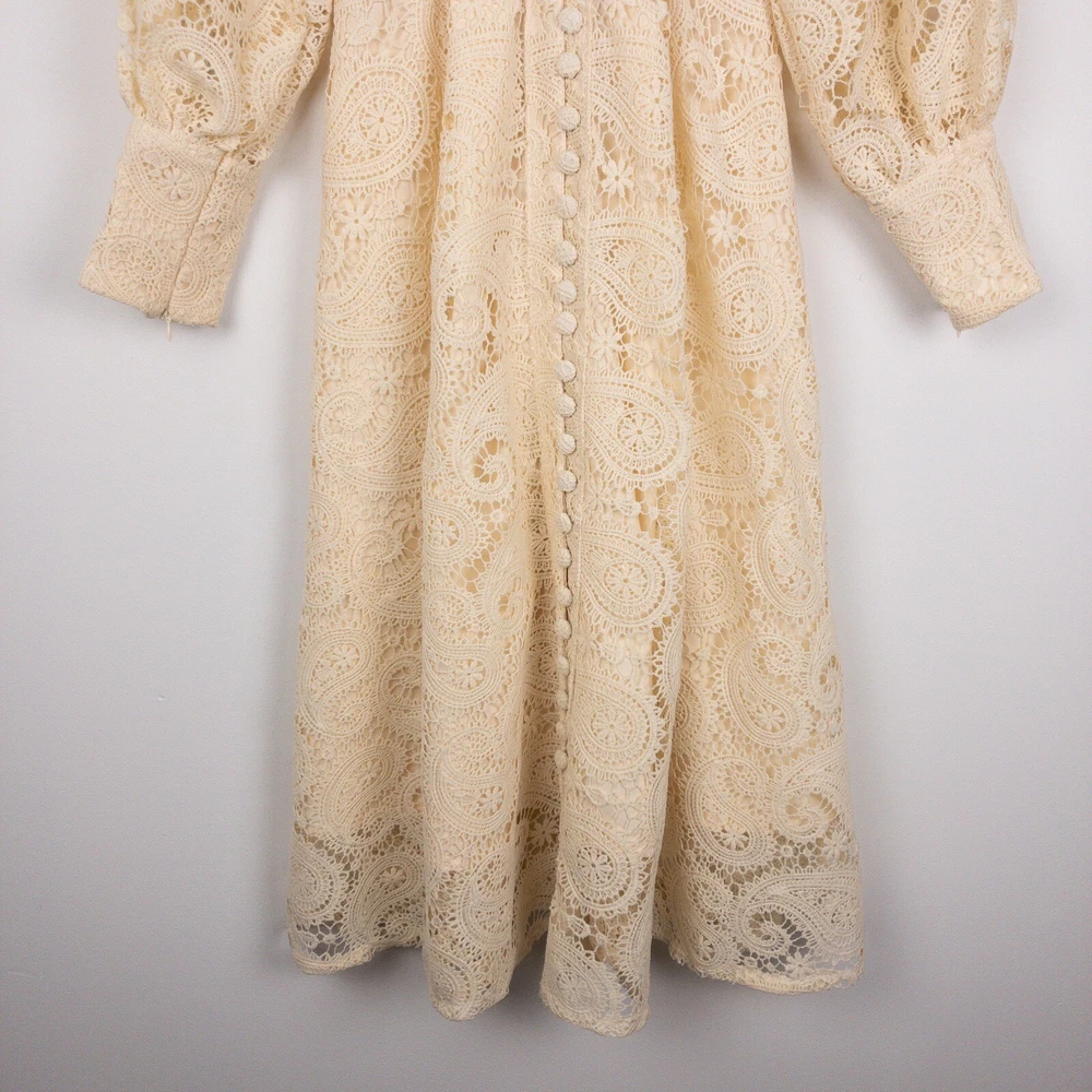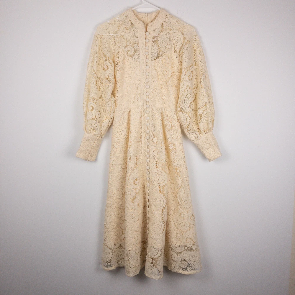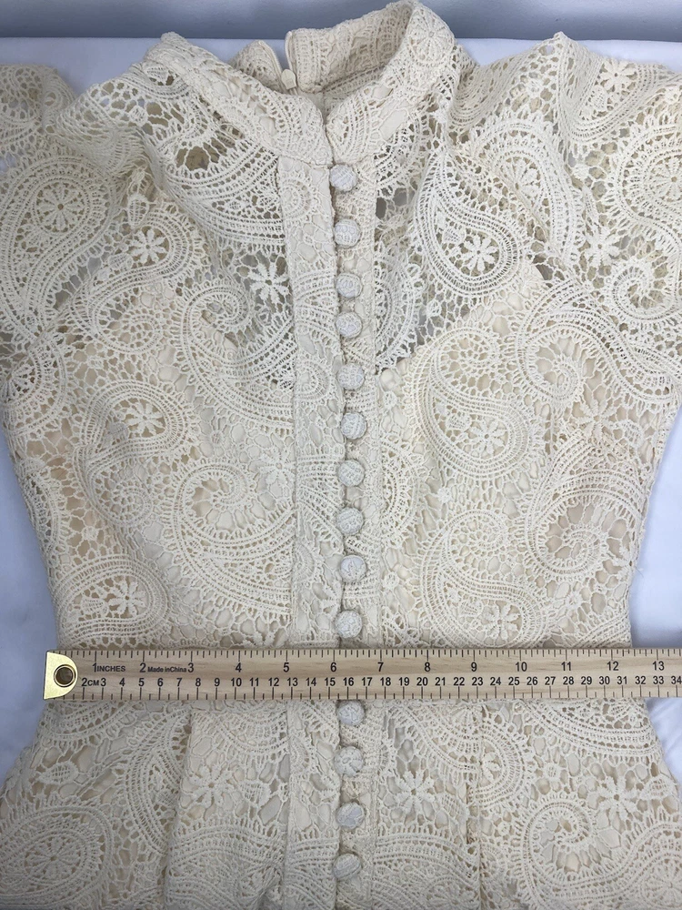 Item Description : Women's Lea Collection Dress Notes & Features : Delicate paisley lace crotchet Button front Zip back Zip up sleeves Victorian style Elegant Size : Adult Small Measurements : Please see photos. If a measurement is missing, ask and we will get it for you. Condition : Good pre-owned condition. Flaws : None found. Shipping : We always ship via the USPS with a tracking number ASAP, Monday-Saturday, and do our best to take care of you and the item at ALL times. Please see the Shipping, returns, and payments section for all available shipping options and prices. Packaging : The item is packaged/shipped in a sealed plastic bag inside of a sealed poly bag mailer. Storage : All items are stored in a smoke free home. Any questions? Please ask; we are happy to answer. Thank you for looking!