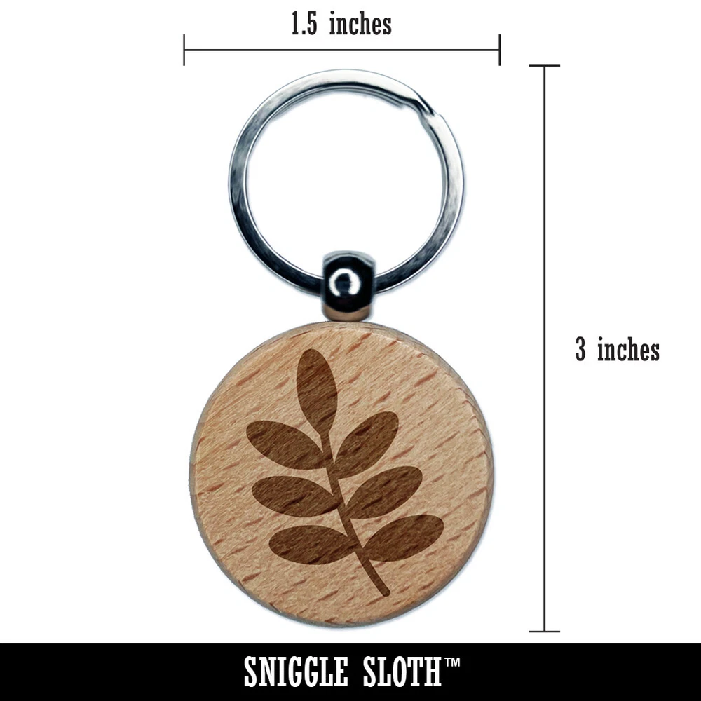 Leaf Branch Solid Engraved Wood Round Keychain Tag Charm