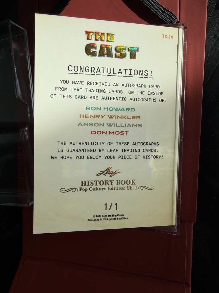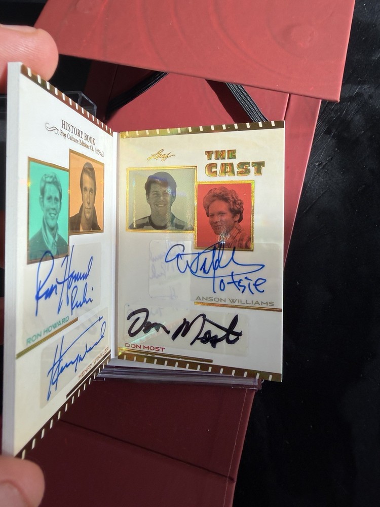 The Leaf History Book 2024 featuring autographs from the cast of "Happy Days" is a unique and limited edition collectible in the television industry. This is a leaf one-of-one. RON HOWARD HENRY WINKLER ANSON WILLIAMS DON MOST
