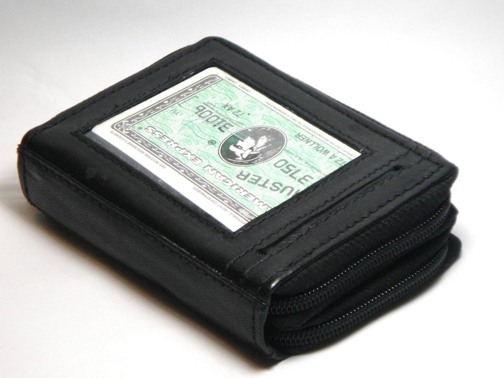 This is a Brand NEW Leather Credit Card Holder Wallet and Coin Purse Organizer. This compact wallet will hold all your credit cards, photo ID, cash and coins. It has 2 compartments secured by zippers to help keep your coins organized. With this organizer you can find them quickly. This wallet is small enough to fit into a purse, pocket or the palm of your hand, It is definitely a great wallet for both man and woman. Specifications : Size : 4 1/2" x 3 1/2" x 1 1/2" NOTE : The demo pictures are for reference of style, pattern, texture and color. Money bills and the other contents are not included.