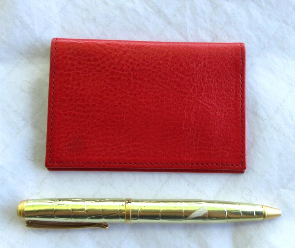 A classic card case in soft, luxurious leather It is easy to access and very functional. A fold over design keeps your cards secure Perfect for holding credit cards and business cards. Measures 4" x 2-7/8" closed Handcrafted. Exceptional quality Made by Graphic Image