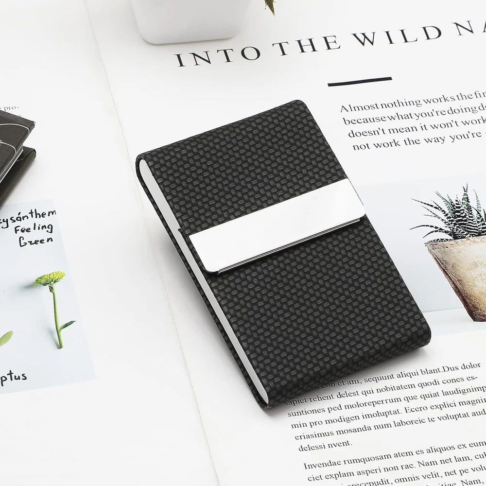 Store New Arrivals Add to Favorite View Feedback Contact Leather Business Card Holder Metal Slim Pocket Wallet with Magnetic Closure Description Item model number Black Carbon Closure Magnetic Style Carbon Fiber Color Black Carbon Pattern Checkered Material Faux Leather, Stainless Steel Material Type Faux Leather, Stainless Steel Manufacturer Part Number -PU-Business-Card-Holder-BC Item Weight 2.08 ounces Product Dimensions 0.5 x 2.4 x 3.7 inches QUICK ACCESS: Built-in magnetic closure, you can easily access any of the cards stored in there. ULTRA SLIM & COMPACT: Hold about 15-25 business cards (according to the thickness of your cards) or 4-8 credit cards. Minimalist enough that you can fits perfectly in your small pocket, briefcase, handbag. PREMIUM MATERIALS: High quality PU leather combined with stainless steel creates a unique style card case. RFID BLOCKING: RFID secure design protect your cards from unwanted wireless communication. BEST GIFT: It can be a great present for yourself or the one you love. Please feel free to contact us if you have any question about our business card case. Product Description The video showcases the product in use. The video guides you through product setup. The video compares multiple products. The video shows the product being unpacked. 1 PROFESSIONAL & BUSINESS 2 SLIM & ELEGANT 3 COMPACT & PORTABLE MaxGear Professional Business Card Case ABOUT US We offer the best prices around on high quality products. Our E-store includes media such as books, movies, music and games while offering electronics, toys, sporting apparel, clothing, tools, general home, garden items and more. SHIPPING We are always working hard to ensure your package arrives as soon as possible. Please understand that some factors like weather, high postal traffic, and the performance of shipping companies are outside of our control. We offer free shipping to the lower 48 states and ship within 2 business days of payment, usually sooner. We do not accept P.O. Boxes. Please provide a physical address. For shipping outside of the continental USA, we only use eBay's Global Shipping Program.The item is shipped to KY and then sent to the rest of the world. International customers are responsible for all duties and taxes. Continue to check out in order to calculate costs for shipping the item to your country. Messages regarding eBay's Global Shipping Program MUST be directed at eBay EXCLUSIVELY. RETURNS We offer a 30-Day Return Policy on items which you are not completely satisfied with. You have the option for a full-refund or an exchange of the item. No returns are available on items shipped outside of the USA. PAYMENT We accept PayPal. CONTACT US This page content is yet to come Please ad us to your favorite seller and visit again later Thank You CUSTOMER SATISFACTION We try our very best to make sure every customer is completely satisfied. If there's a problem, message us! We're happy to help. WE ACCEPT Copyright © 2021 AutoDS. | All Rights Reserved